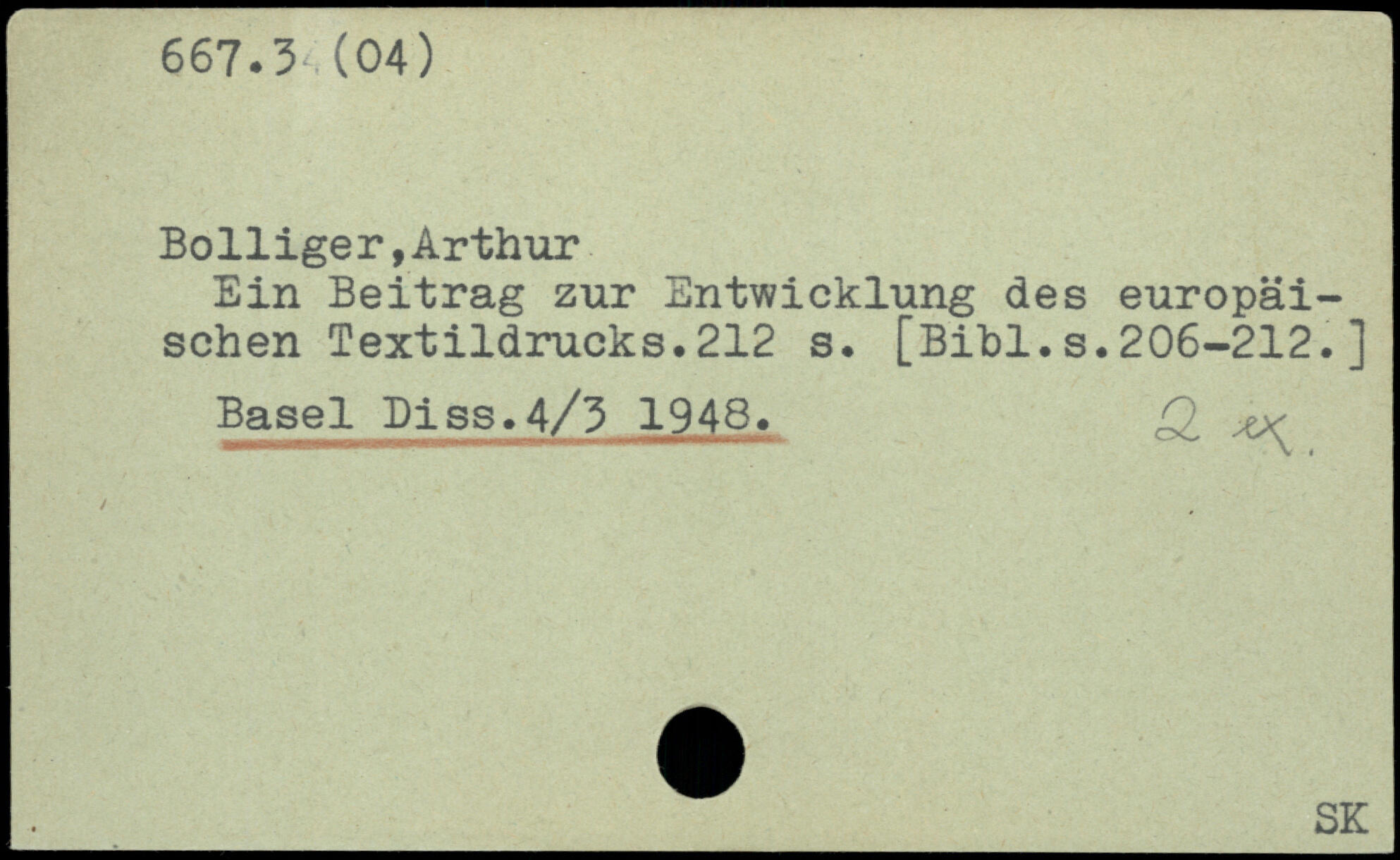 Bolliger,Arthur Ein Beitrag zur Entwicklung des europäischen Textildrucks