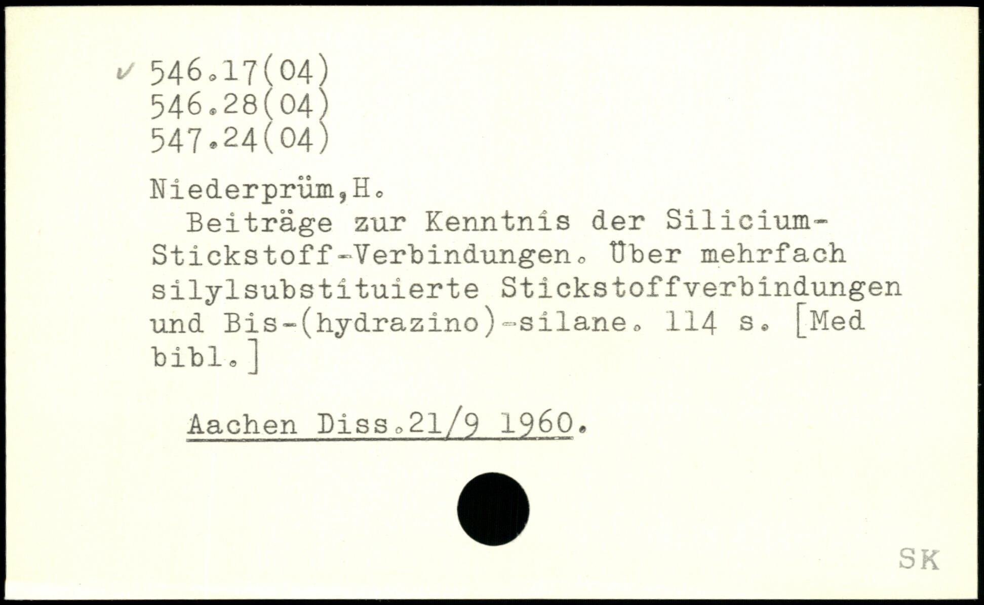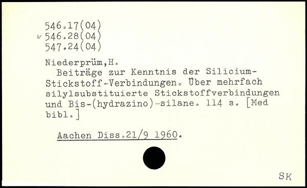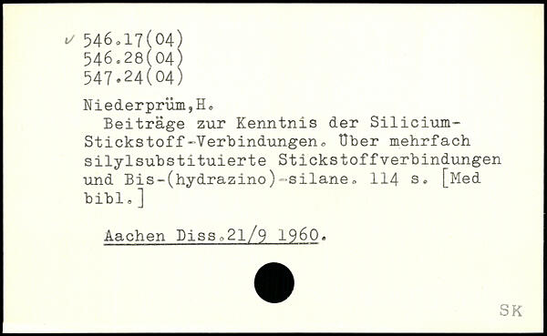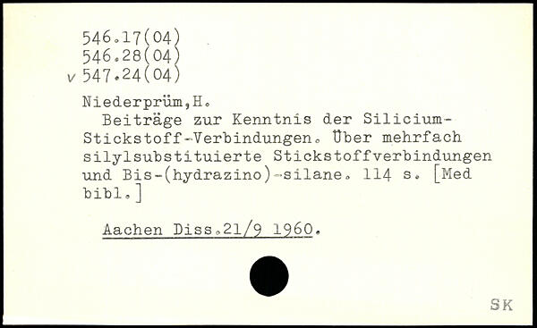 Beiträge zur Kenntnis der Silicium-Stickstof f-Verbindungen0 über mehrfach silylsubstituierte StickstoffVerbindungen und Bis-(hydrazino)-silane