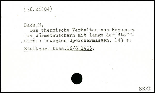 Las thermische Verhalten von Regenera-tiv-Wärmetauschern mit längs der Stoffströme bewegten Speichermassen.