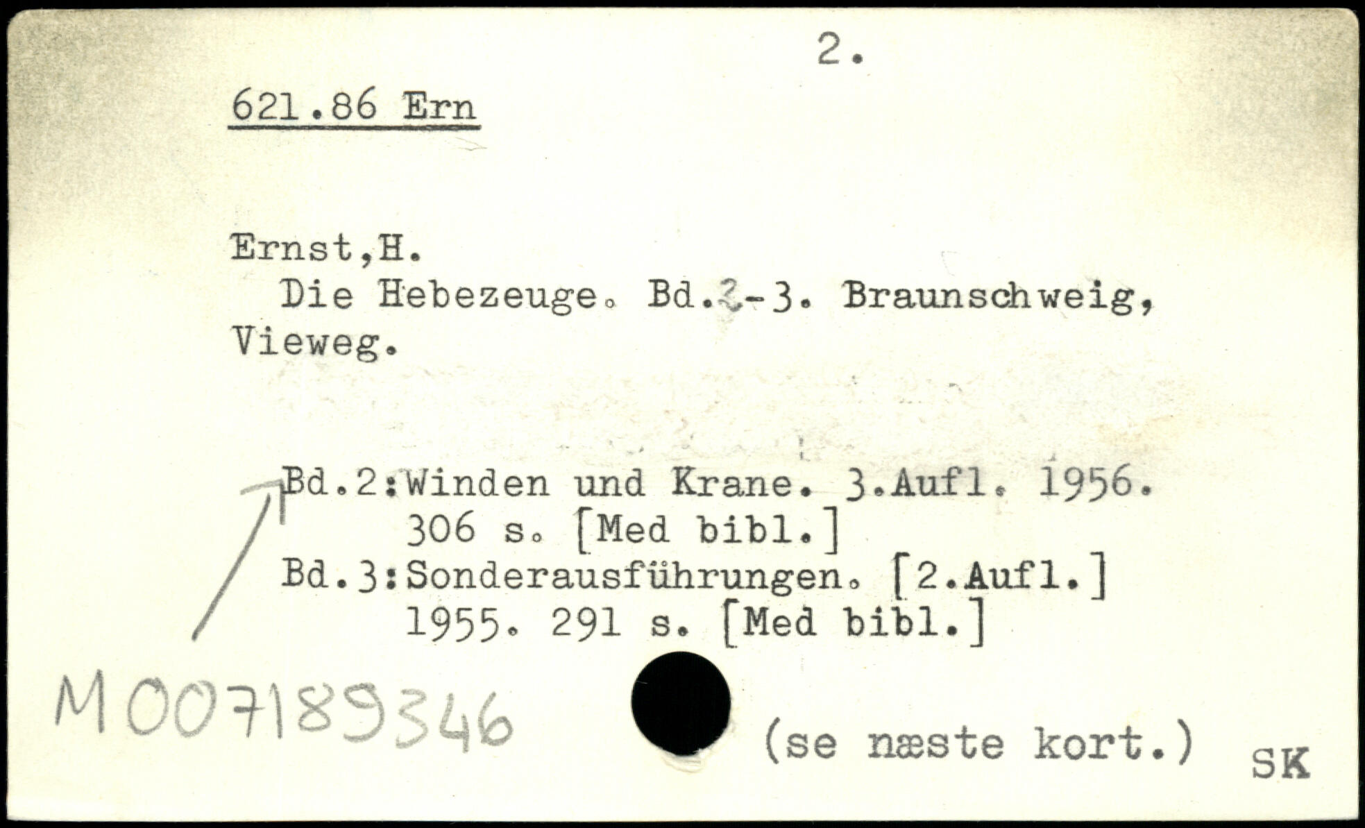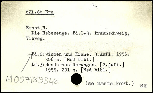 Die Hebezeuge, Bd.£-3, Braunschweig, Vieweg. /Bd. 2: Winden und Krane.
