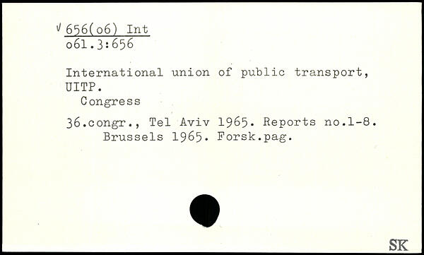 International union of public transport, UITP. Congress 36.congr., Tel Aviv 1965. Reports no.1-8.