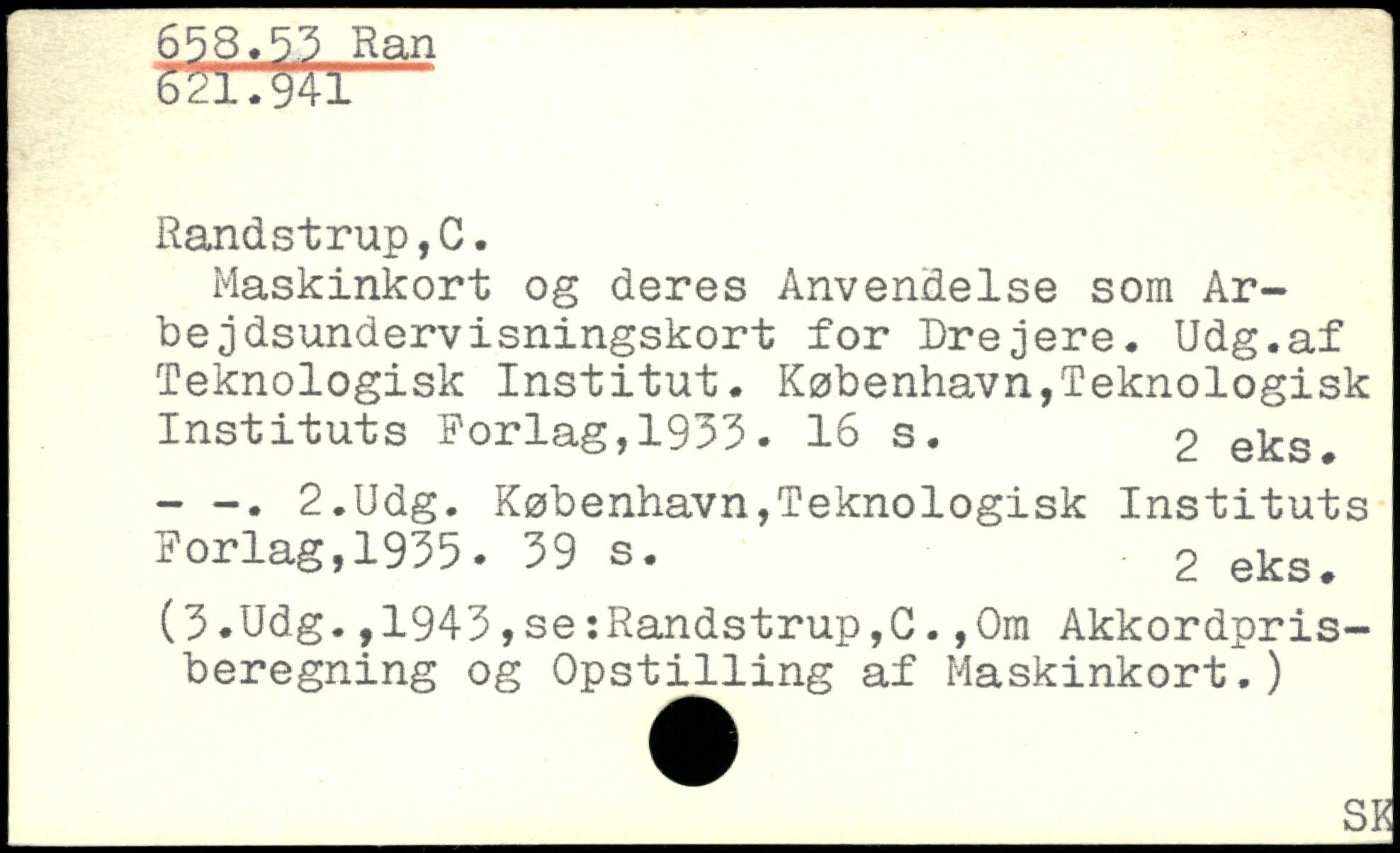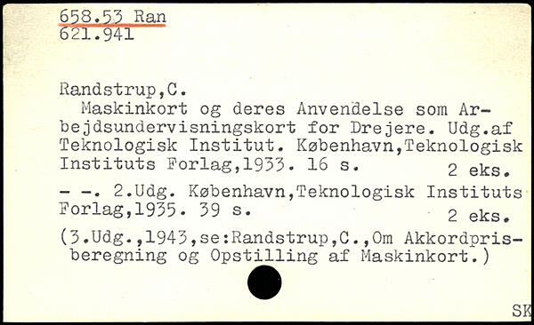 Maskinkort og deres Anvendelse som Ar-bejdsundervisningskort for Drejere. Udg.af Teknologisk Institut.