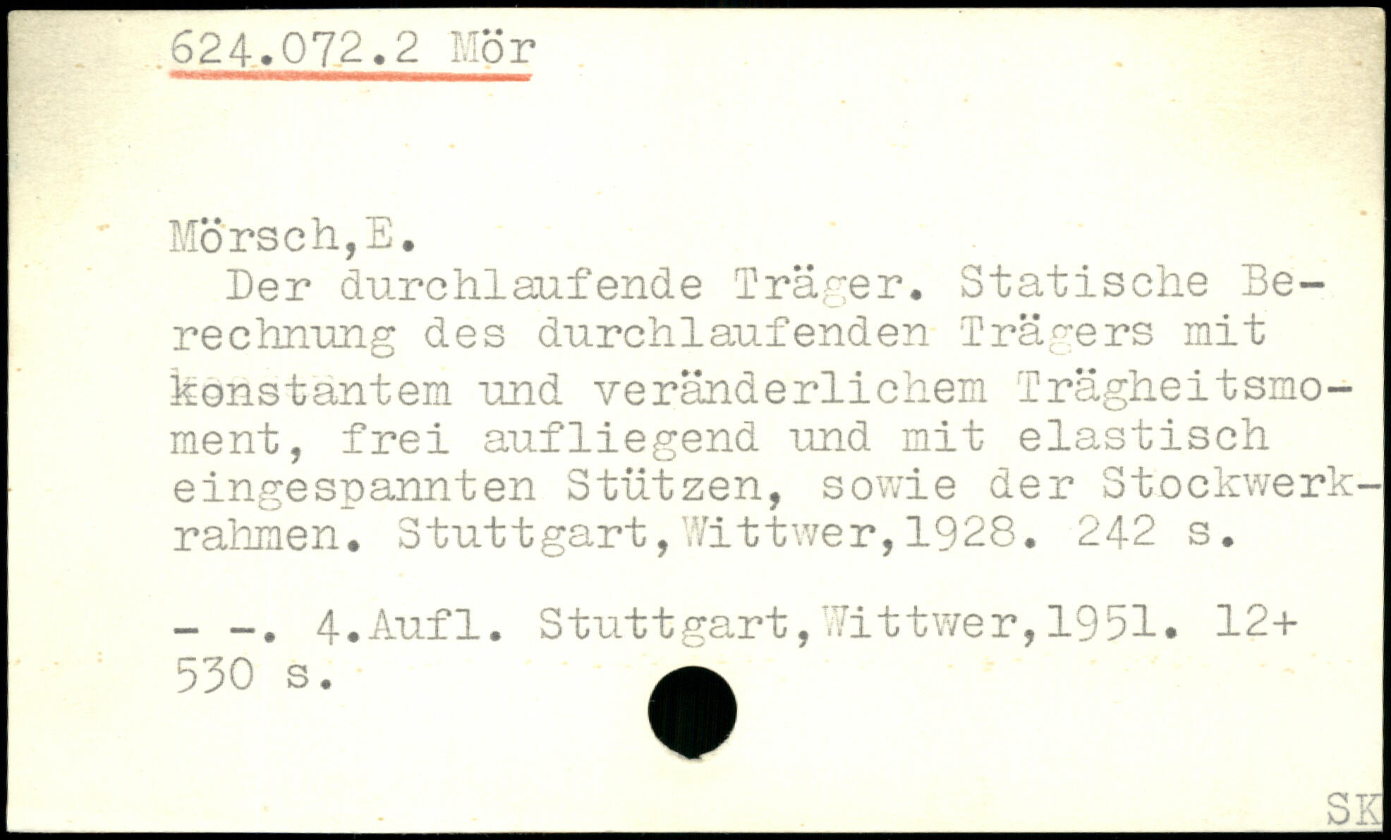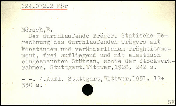 Der durchlaufende Träger. Statische Berechnung des durchlaufenden Trägers mit konstantem und veränderlichem Trägheitsmoment, frei aufliegend und mit elastisch eingespannten Stützen, sowie der Stockwerkrahmen.