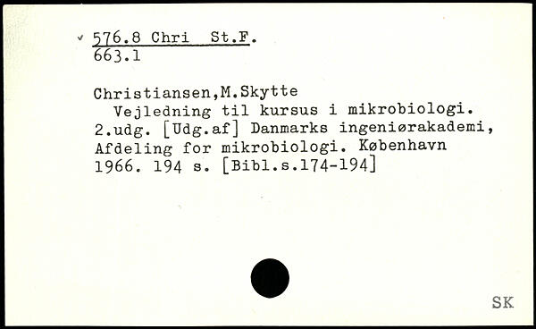 Christiansen,M.Skytte Vejledning til kursus i mikrobiologi.