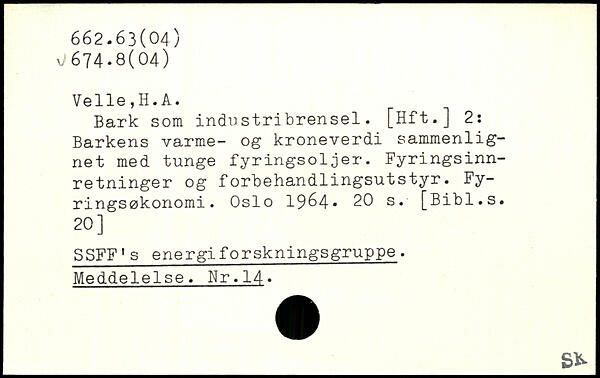 Bark som industribrensel. [Hft.] 2: Barkens varme- og kroneverdi sammenlignet med tunge fyringsolier. Fyringsinn-retninger og forbehandlingsutstyr. Fyringsøkonomi. Oslo 1964.