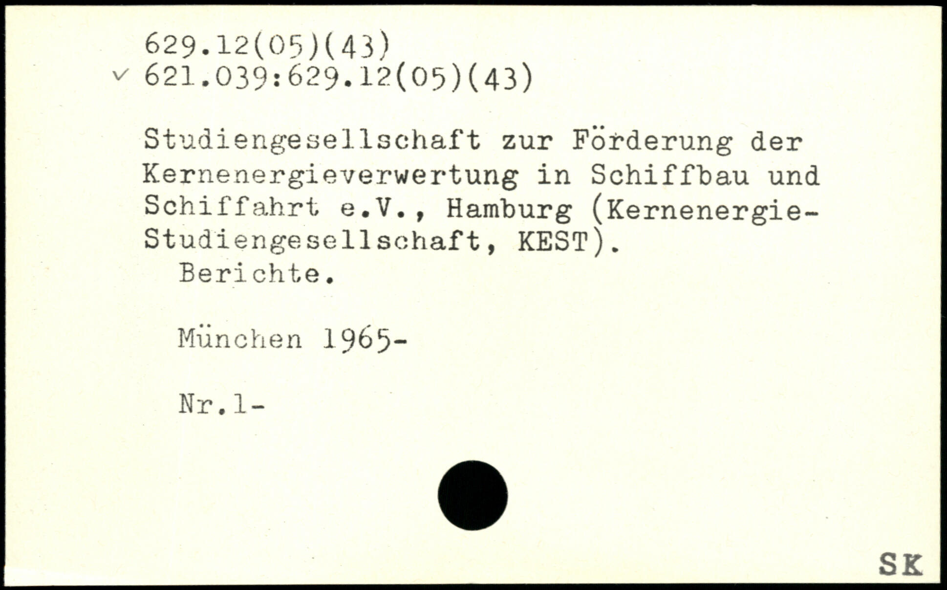 Studiengesellschaft zur Förderung der Kernenergieverwertung in Schiffbau und Schiffahrt e.V., Hamburg (Kernenergie-Studiengesellsohaft, KEST). Beri chte.