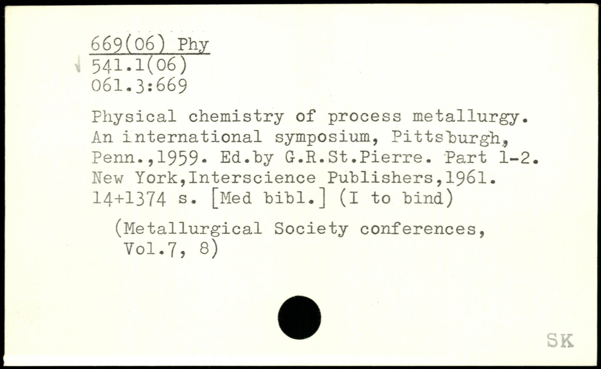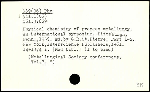 Physical chemistry of process metallurgy. An international symposium, Pittsburgh,, Penn.,1959- Ed.by G.R.St.Pierre. Part 1-2.