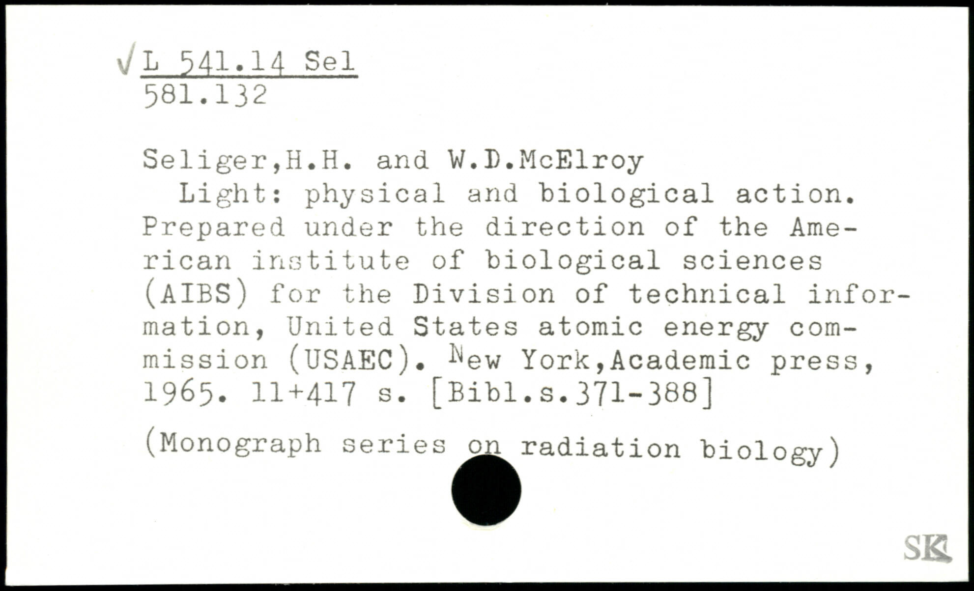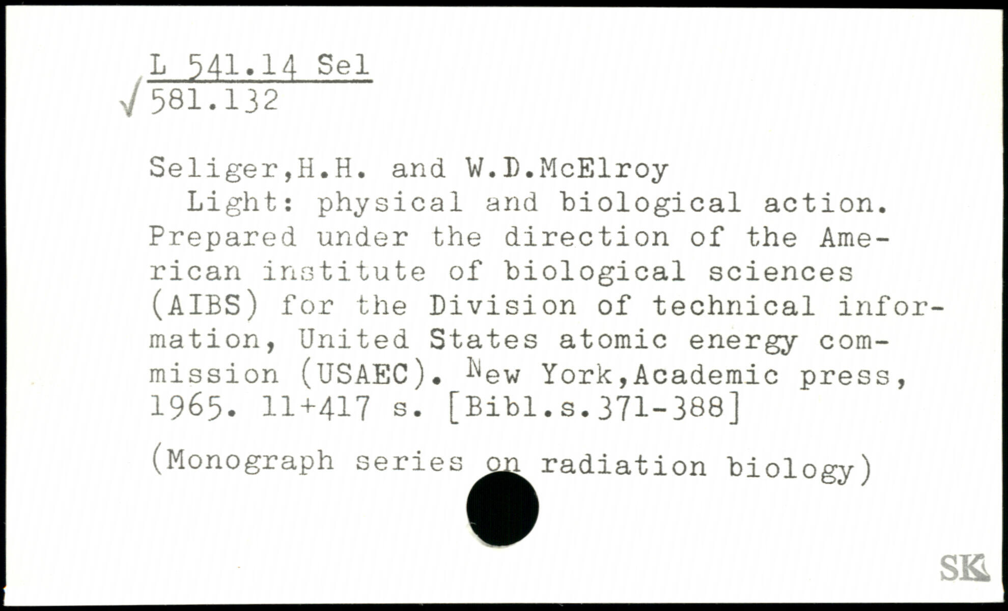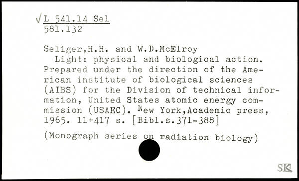 Light: physical and biological action. Prepared under the direction of the American institute of biological sciences (AIES) for the Division of technical information, United States atomic energy commission (USAEC). ^ew
