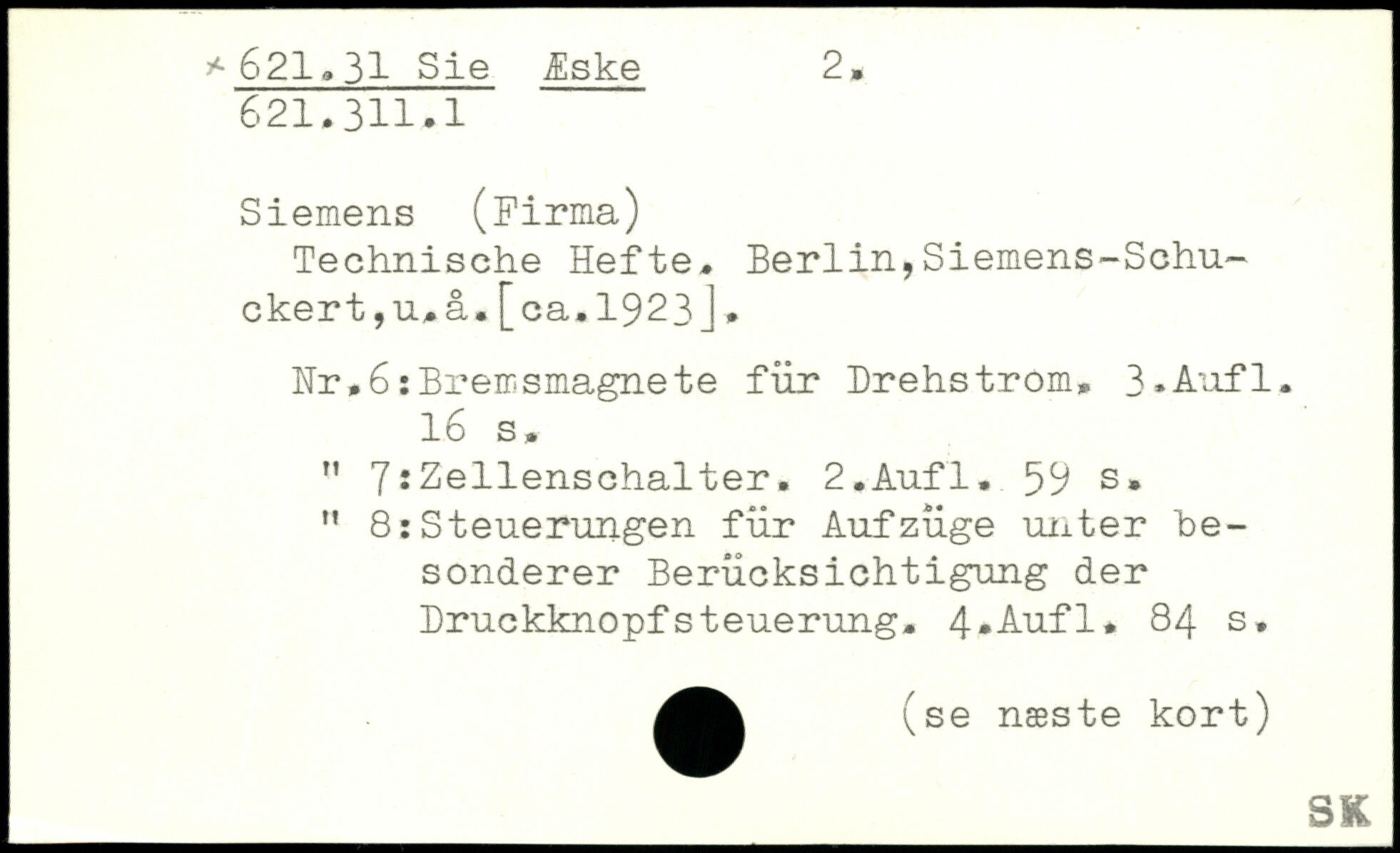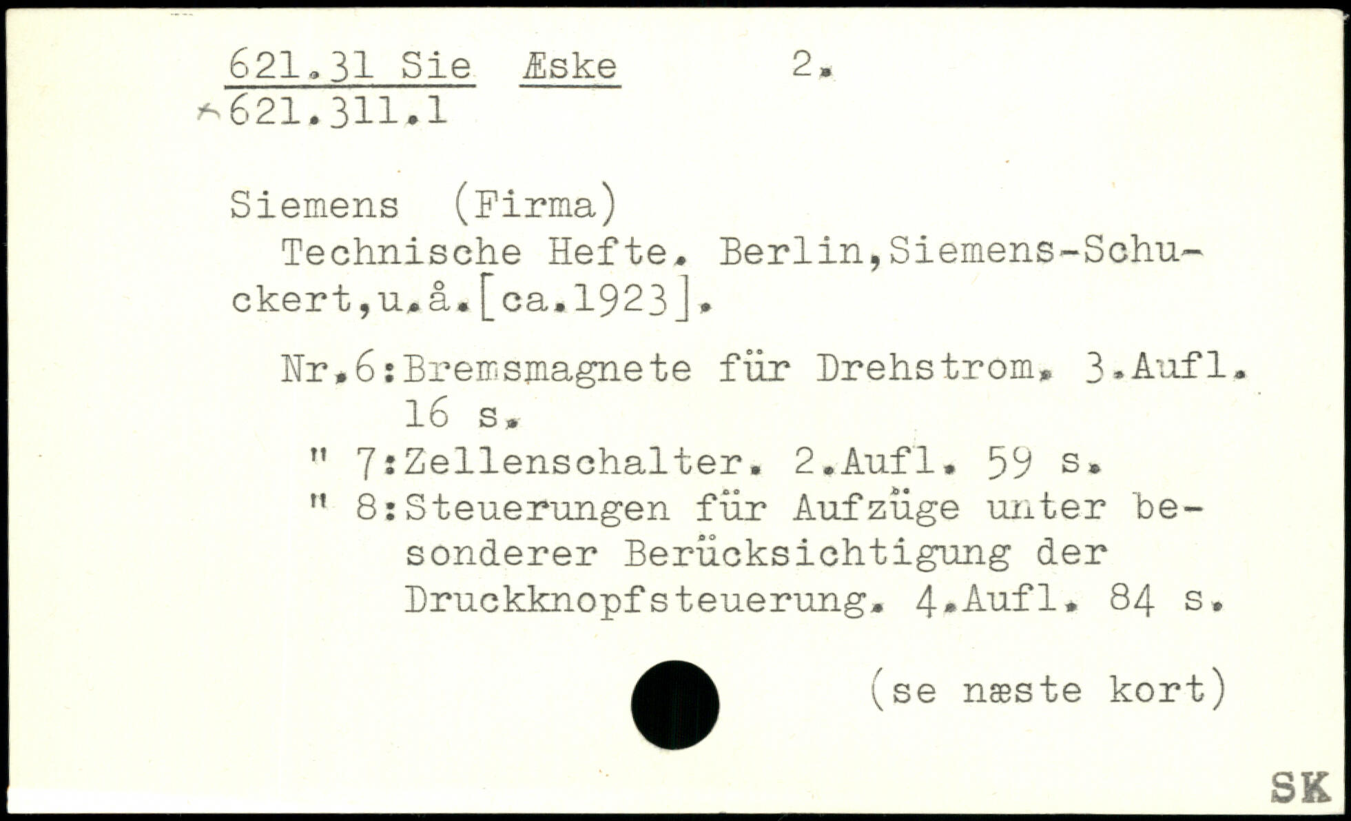 Technische Hefte. Berlin,Siemens-Schu-ckert,u, å.[ca.1923J. Nr,6:Bremsmagnete für Drehstrom.