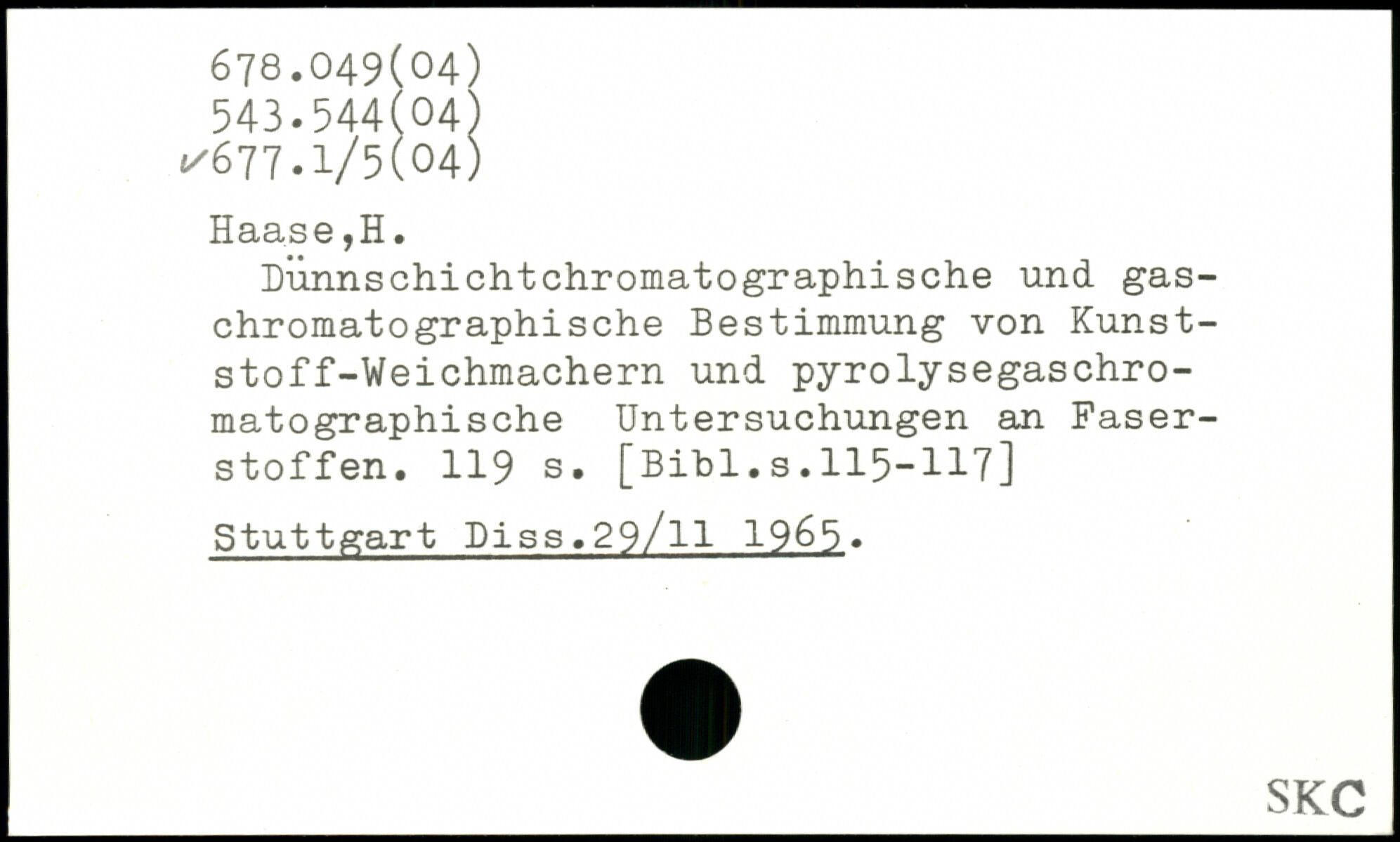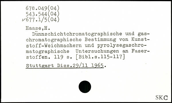 Dünnschichtchromatographische und gaschromatographische Bestimmung von Kunststoff-Weichmachern und pyrolysegaschromatographische Untersuchungen an Faserstoffen.