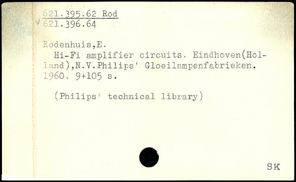 Hi-Fi amplifier circuits, Eindhoven(Hol-land),N.Y,Philips' Gloeilampenfabrieken, 1960.