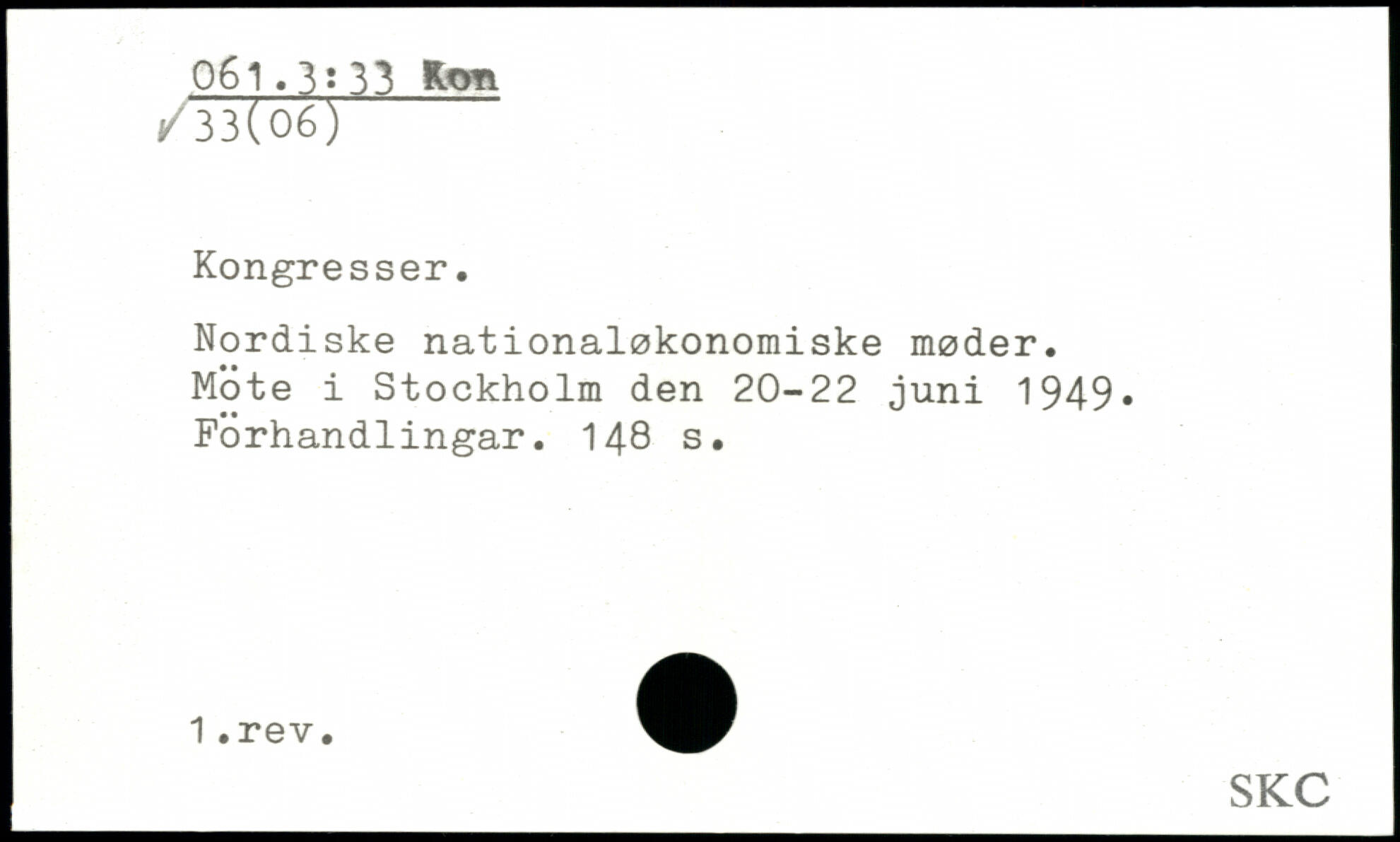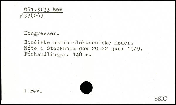 Nordiske nationalokonomiske moder. Möte i Stockholm den 20-22 juni 1949, Förhandlingar.