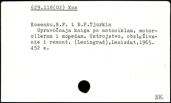 Spravocnaja kniga po motociklam, motor-olleram i mopedam. Ustrojstvo, obsluziva-nie i remont. (Leningrad),Lenizdat,1965.