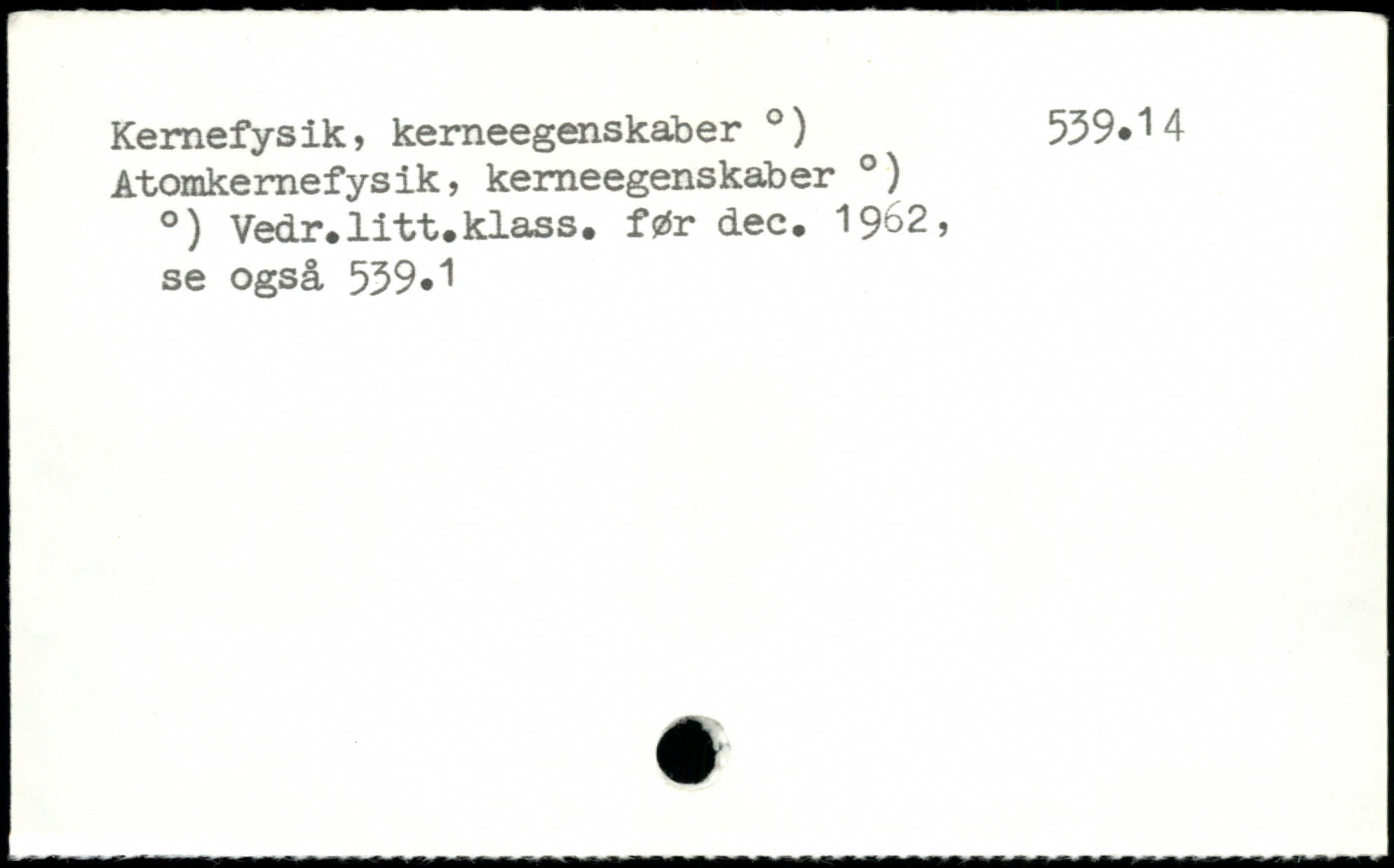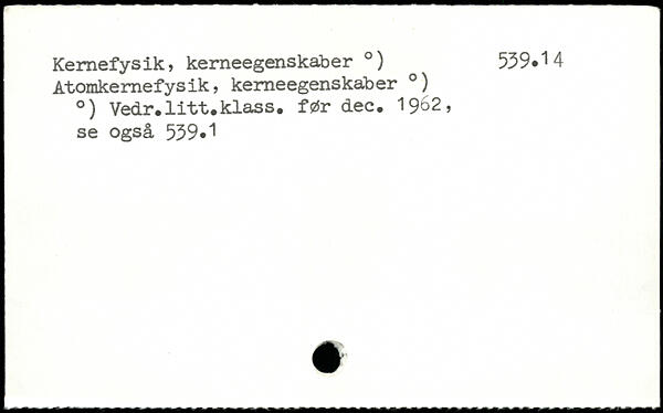 Kernefysik, kerneegenskaber .) 539.14 Atomkernefysik, kemeegenskaber .) .) Vedr.litt.klass. før dec. 19^2, se også 539.1