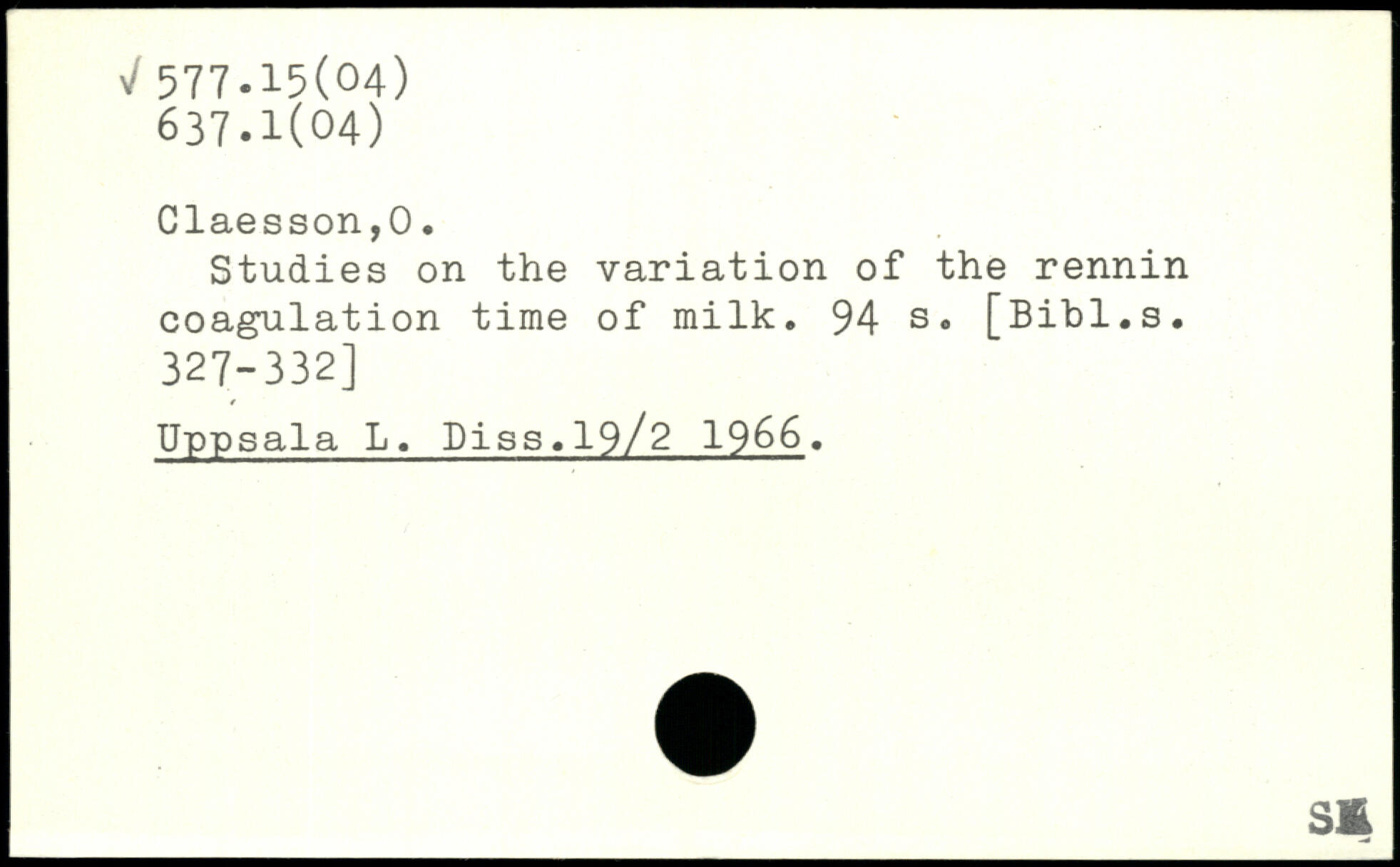 Studies on the variation of the rennin coagulation time of milk.