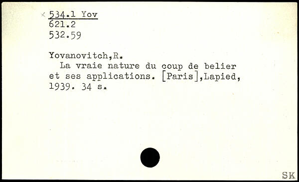 La vraie nature du coup de belier et ses applications. [Paris],Lapied, 1939.