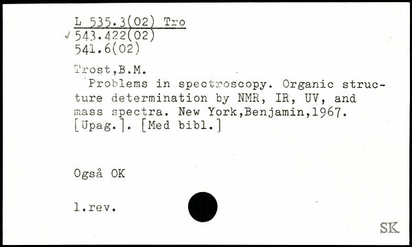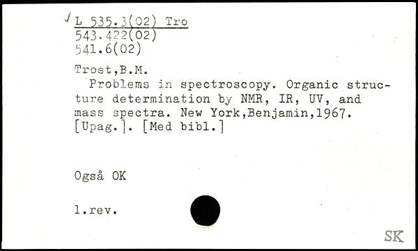 Problems in spectroscopy. Organic structure determination by NMR, IR, UY, and mass spectra.