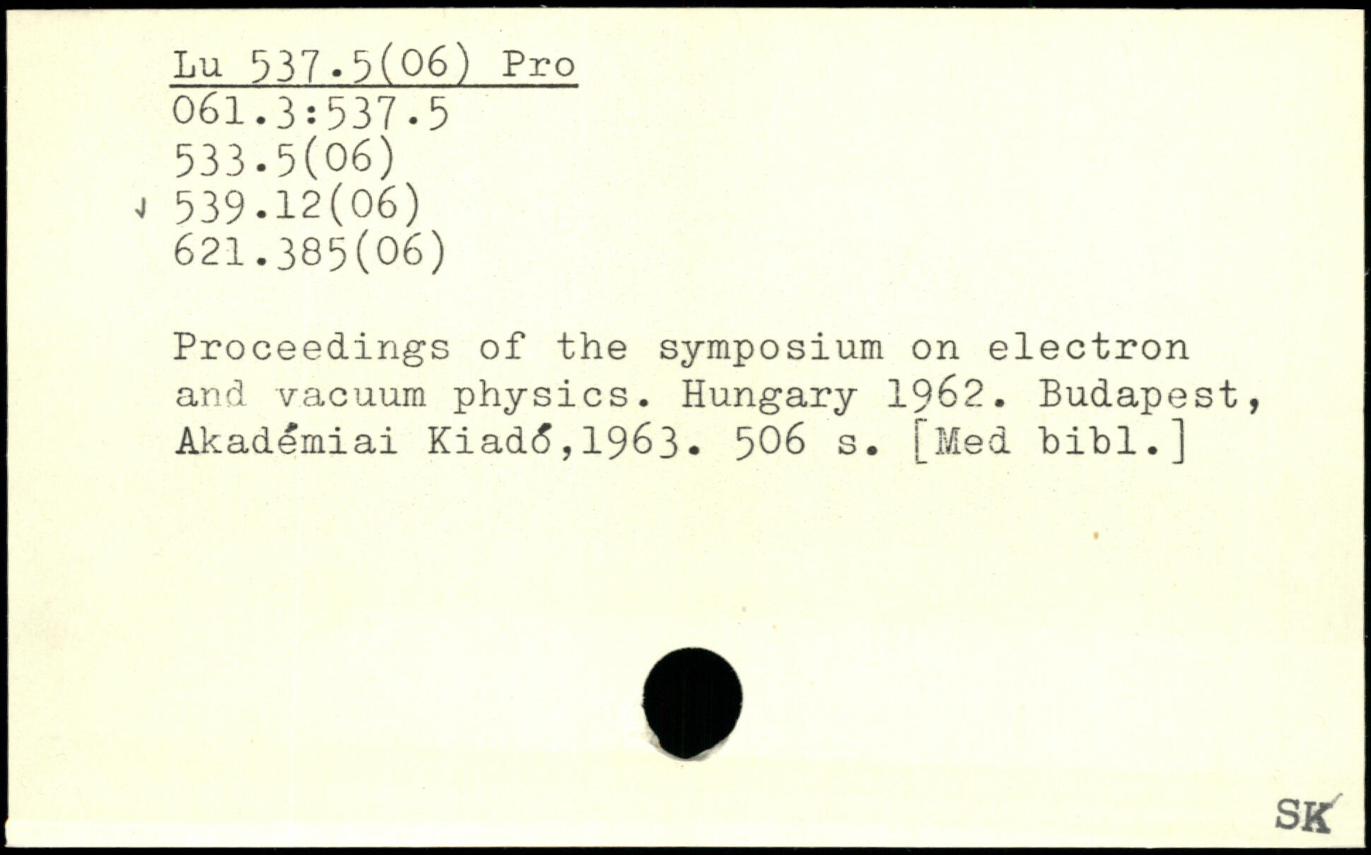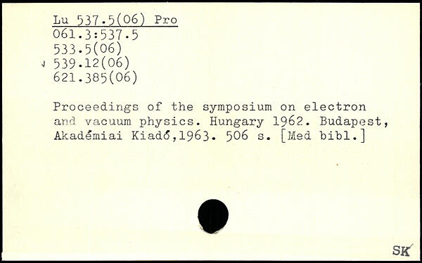 Proceedings of the symposium on electron and vacuum physics. Hungary 1962. Budapest, Akademiai Kiad<5,1963.