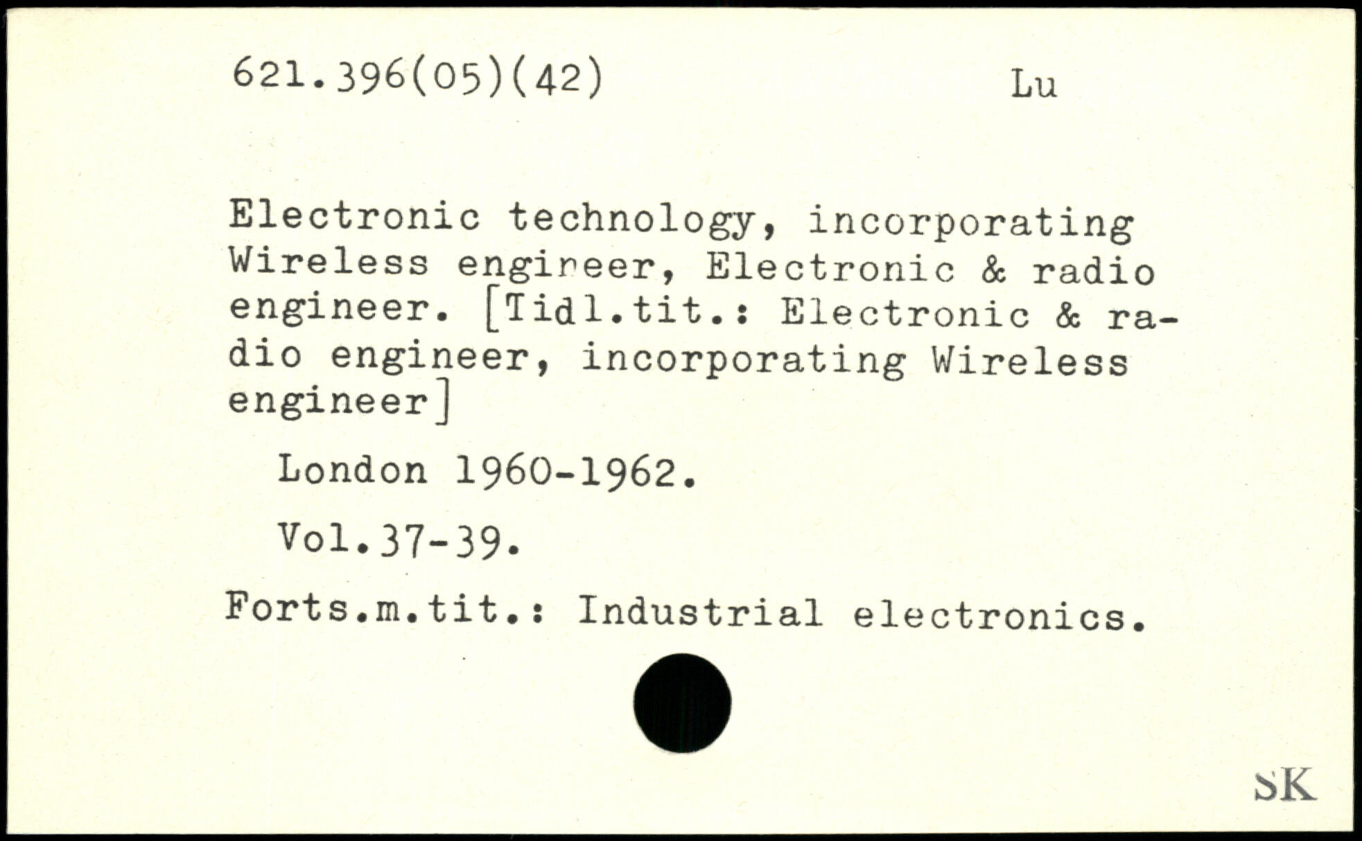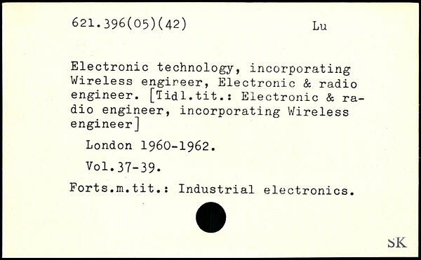 Electronic technology, incorporating Wireless engireer, Electronic & radio engineer, [lidl.tit.: Electronic & radio engineer, incorporating Wireless engineer]