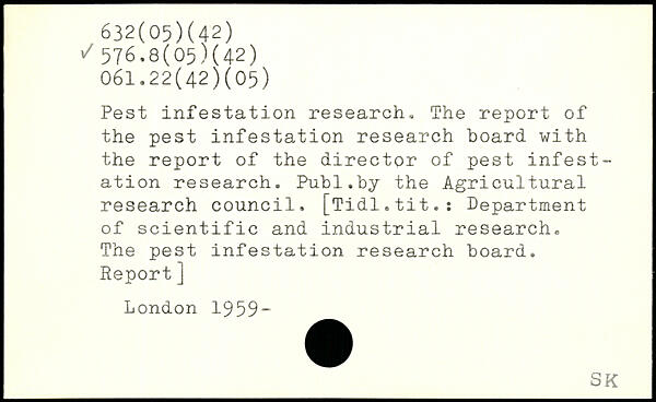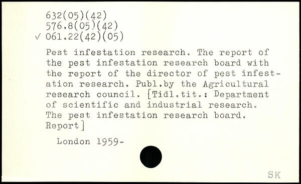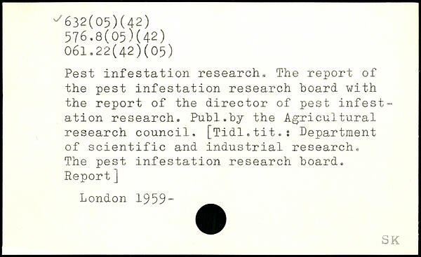 Pest infestation research. The report of the pest infestation research hoard with the report of the director of pest infestation research.
