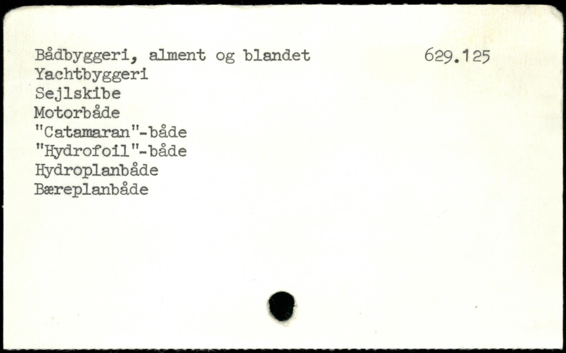 Bådbyggeri, alment og blandet 629.125 Yachtbyggeri Sejlskibe Motorbåde "Catamaran "-både "Hydrofoil"-både Hydroplanbåde Bæreplanbåde