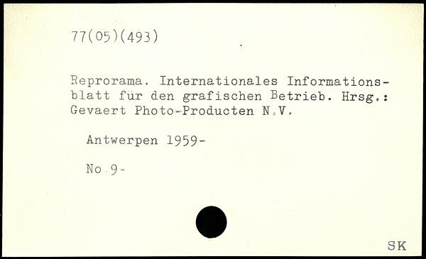 Peprorama. Internationales Informationsblatt für den grafischen Betrieb. Hrsg,: Gevaert Photo-Producten N;V, Antwerpen 1959" No 9-