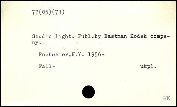 Studio light, Puhl,by Eastman Kodak company. RochesterY. 1956- Fall- ukpl.