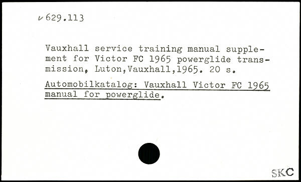 Vauxhall service training manual supplement for Victor FC 1965 powerglide transmission