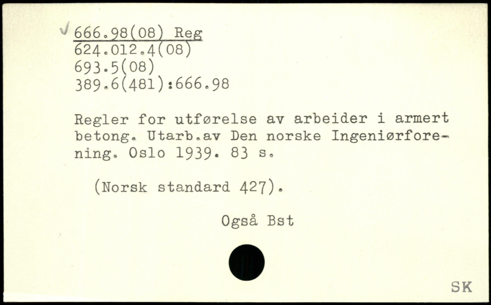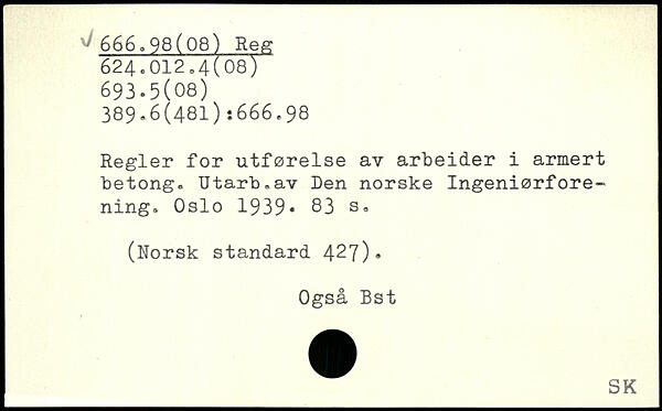 Regler for utførelse av arbeider i armert betong. Utarb.av Den norske Ingeniørforening. Oslo 1939.