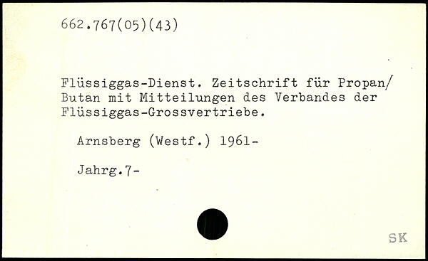 i Flüssiggas-Dienst. Zeitschrift für Propan/ Butan mit Mitteilungen des Verbandes der Flüssiggas-Grossvertriebe. Arnsberg (Westf.) 1961- Jahrg.7-