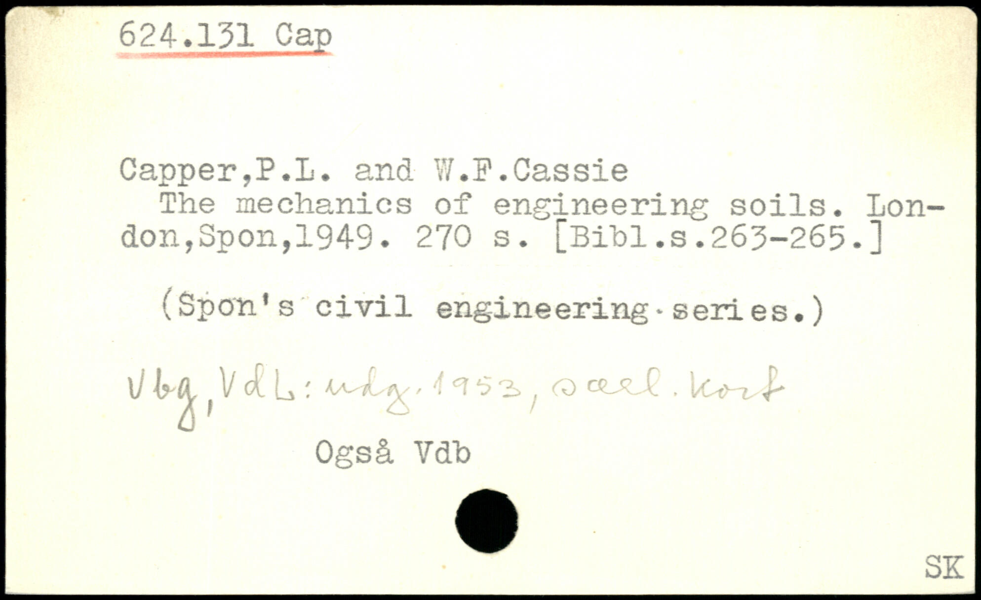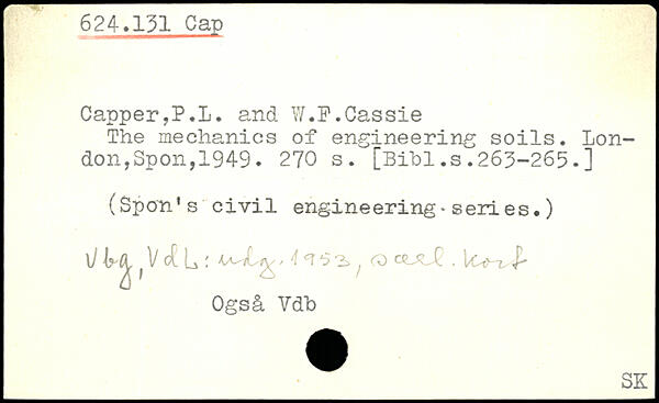 Capper,P.l. and W.F.Cassie The mechanics of engineering soils.