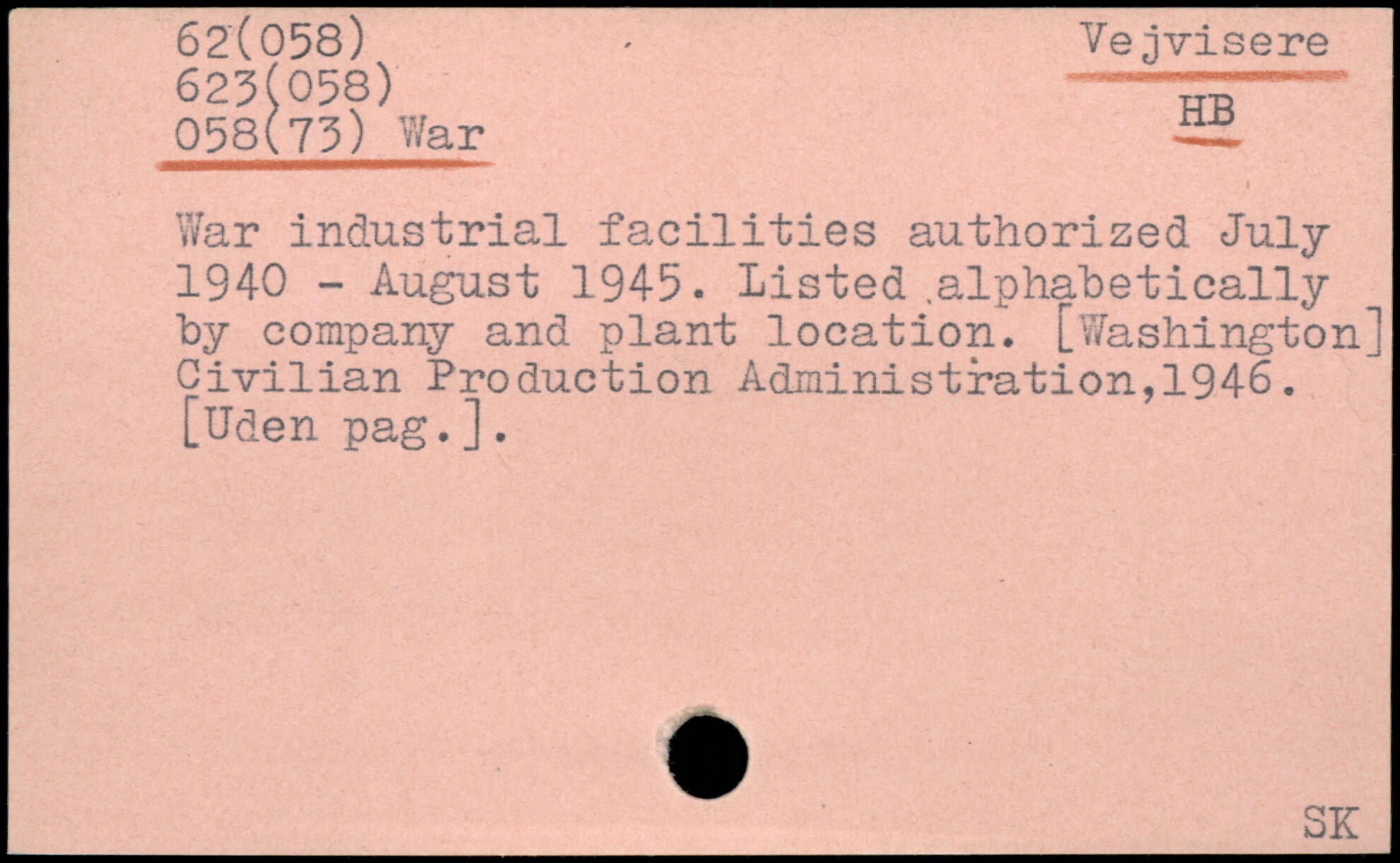 War industrial facilities authorized July 1940 - August 1945. Listed .alphabetically by company and plant location. [Washington] Civilian Production Administration,1946. [Uden pag.].