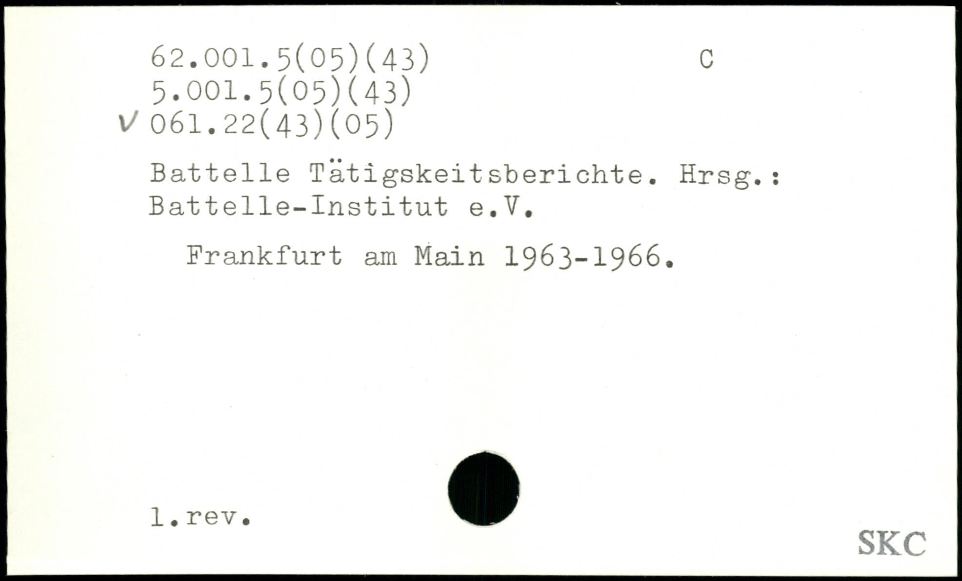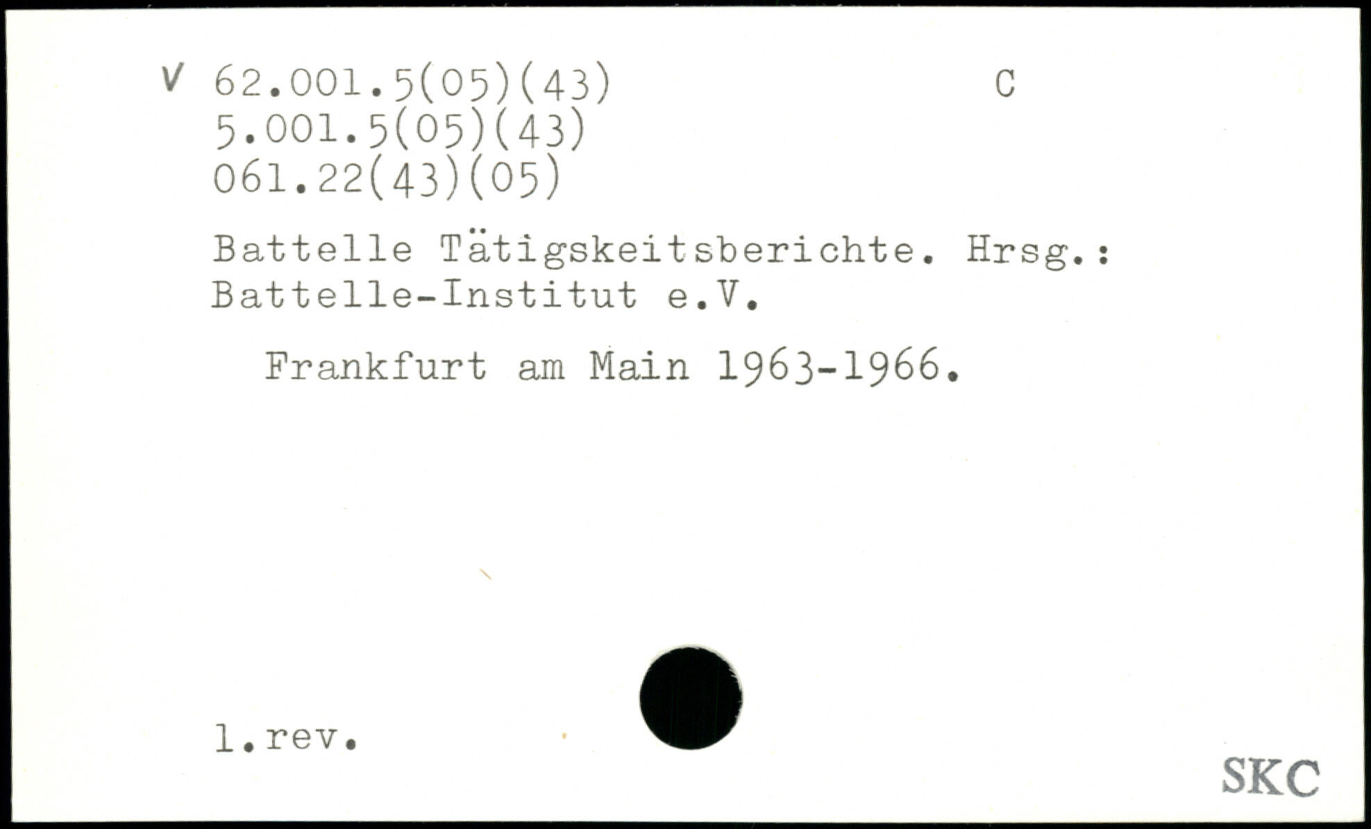 Battelle Tätigskeitsberichte. Hrsg.: Battelle-Institut e.V.