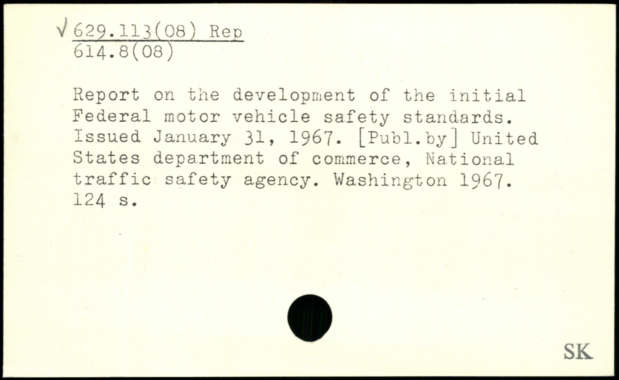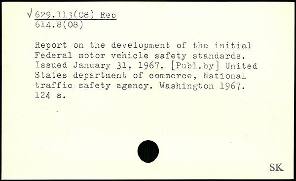 Report on the development of the initial Federal motor vehicle safety standards. Issued January 31, 1967-