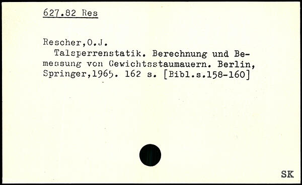 Talsperrenstatik. Berechnung und Bemessung von Cewichtsstaumauern.