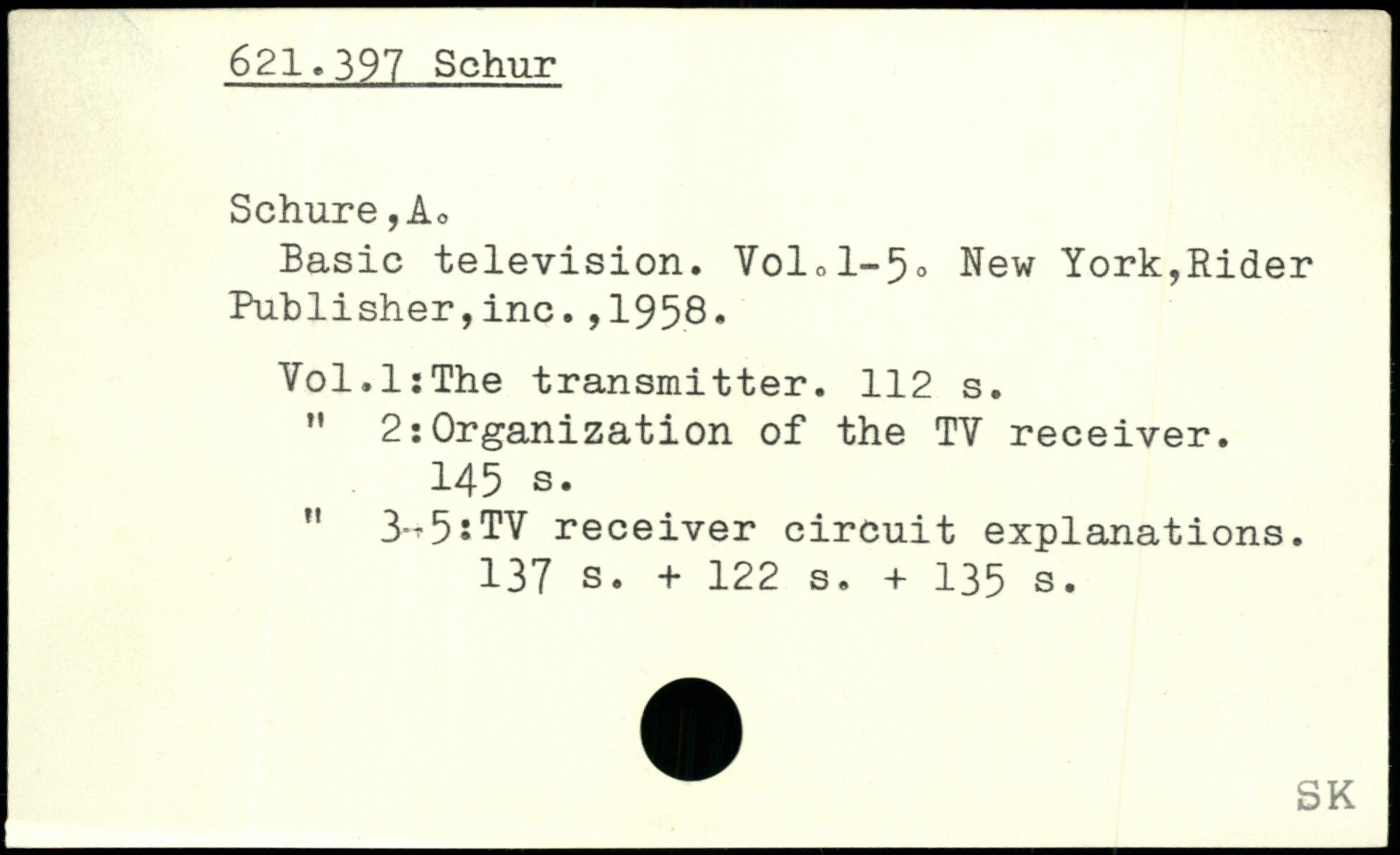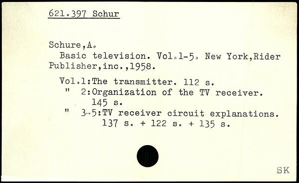 Basic television. Volol-5<> New York,Rider Publisher,inc.,1958. Vol.l:The transmitter.