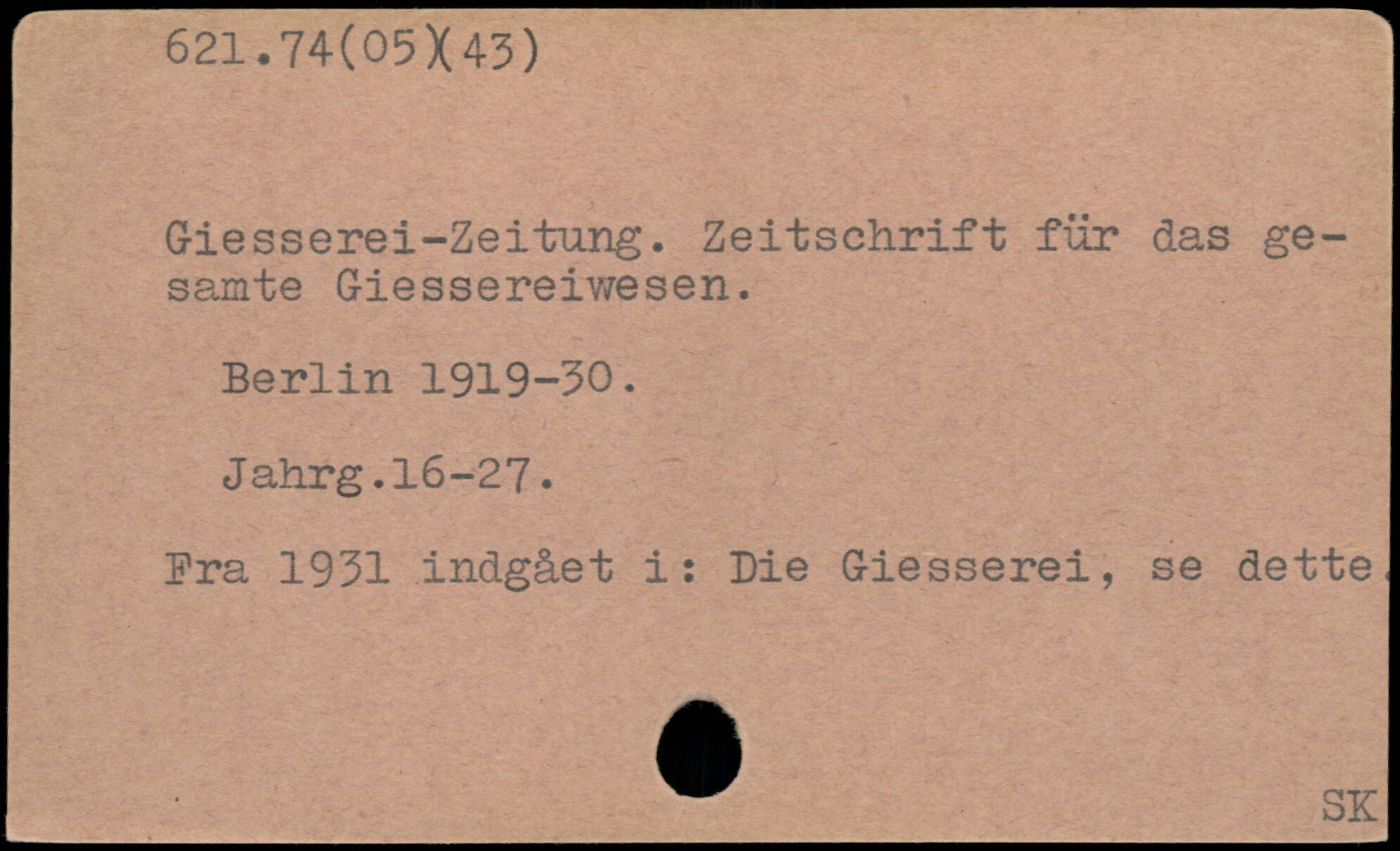 Giesserei-Zeitung. Zeitschrift für das gesamte Giessereiwesen.
