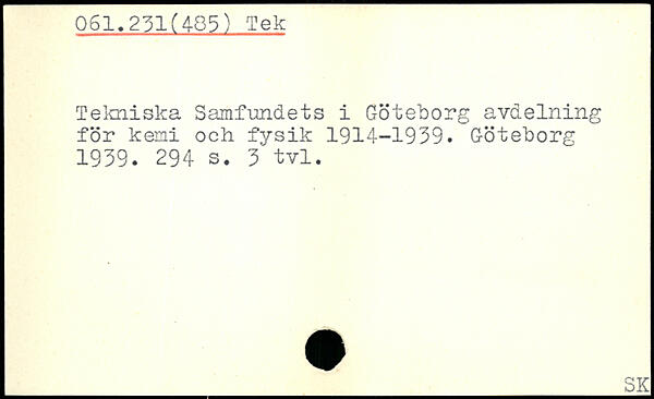 Tekniska Samfundets i Göteborg avdelning för kemi och fysik 1914-1939. Göteborg 1939.