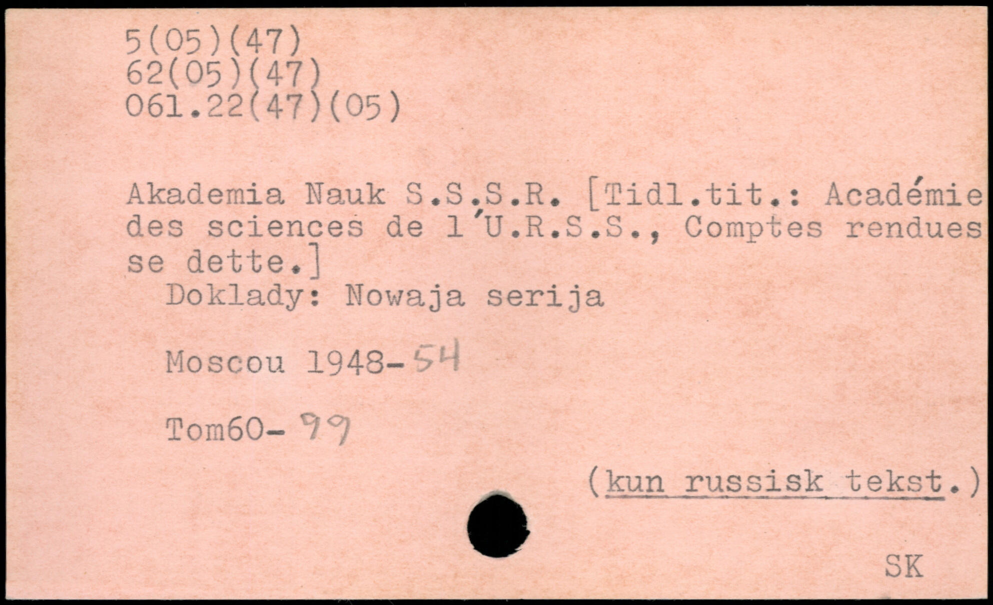 Akademia Nauk S.S.S.R. [îidl.tit.: Académie des sciences de l’U.R.S.S., Comptes rendues se dette.] Doklady: Nowaja serija Moscou 1948-Tom60- 1.)
