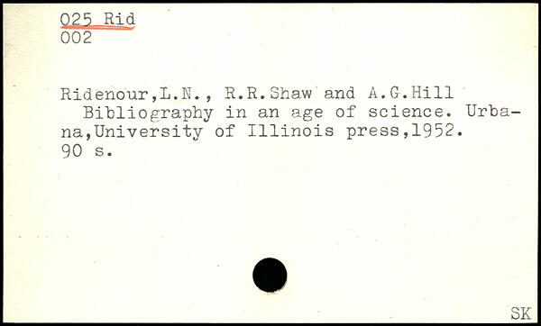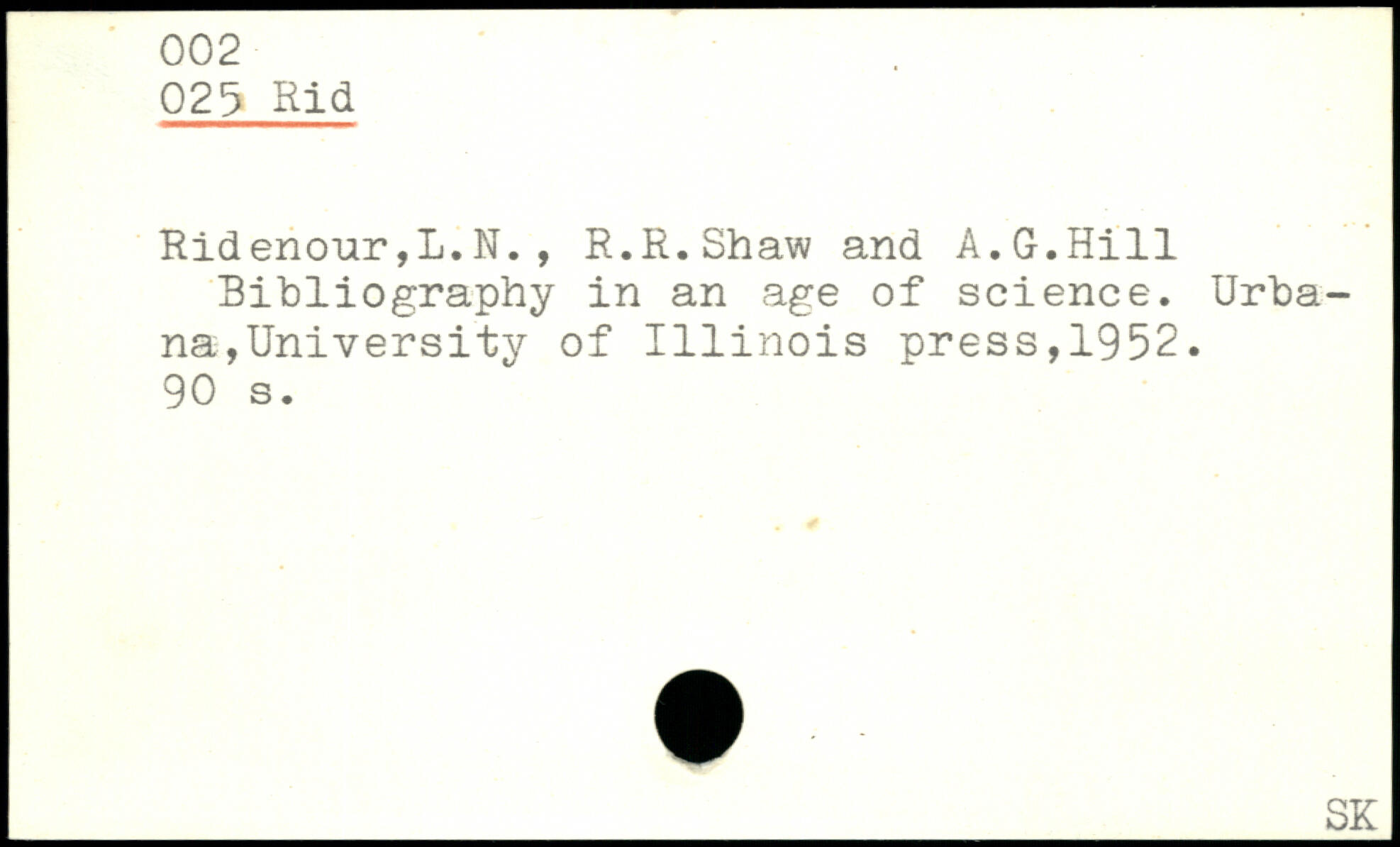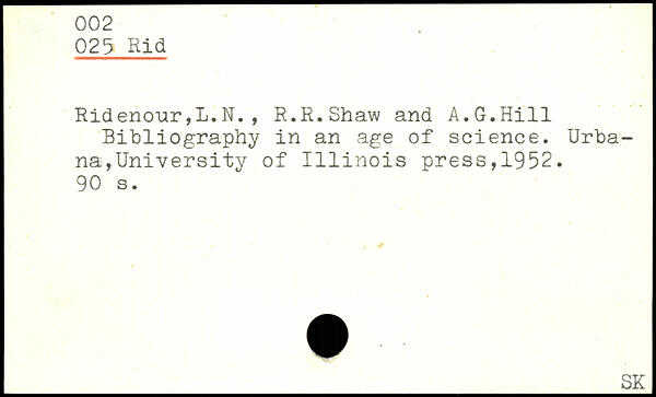 Bibliography in an age of science. Urba-na,University of 1111nois press,1952.