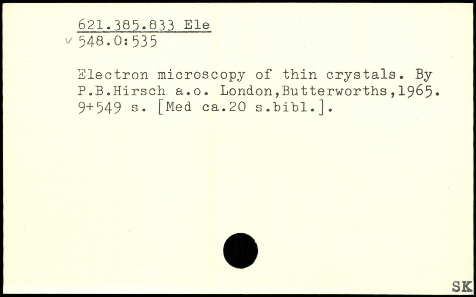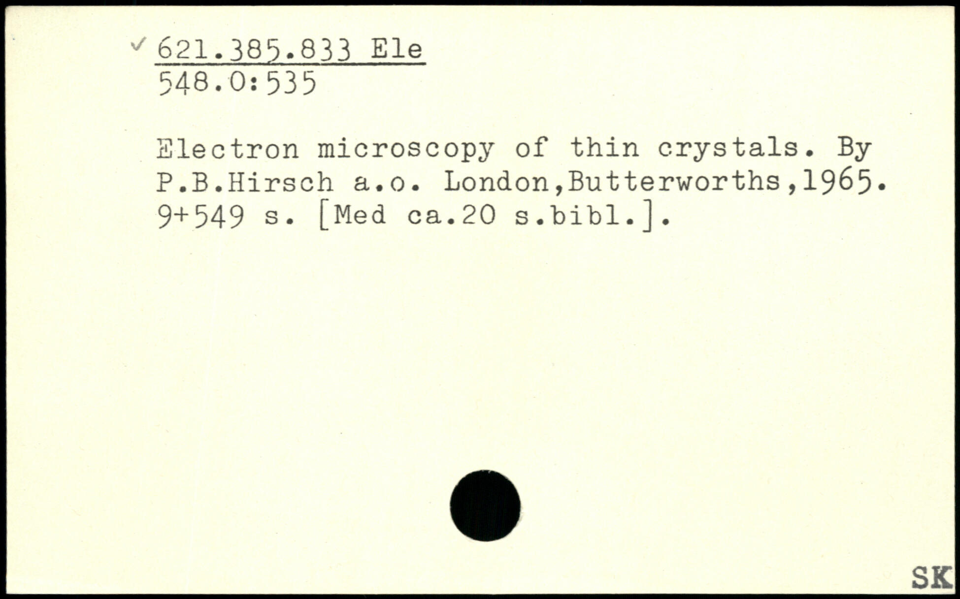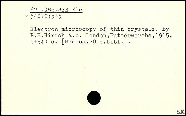 Electron microscopy of thin crystals. By P.B.Hirsch a.o.