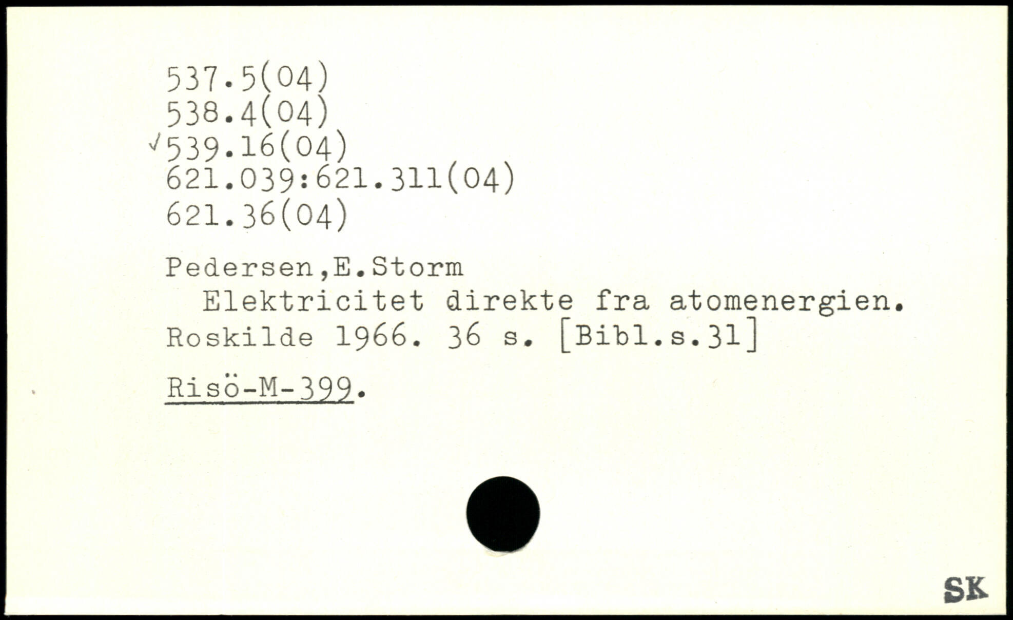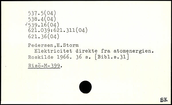 Pedersen,E.Storm Elektricitet direkte fra atomenergien. Roskilde 1966.