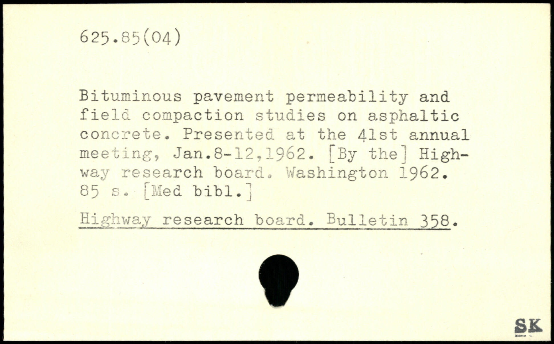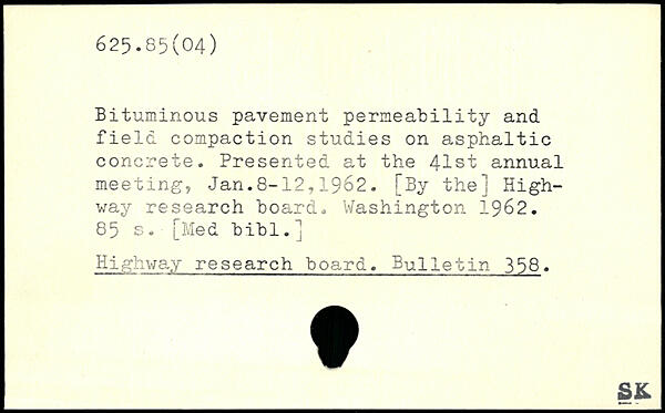 Bituminous pavement permeability and field compaction studies on asphaltic concrete. Presented at the 41st annual meeting, Jan.8-12,1962.