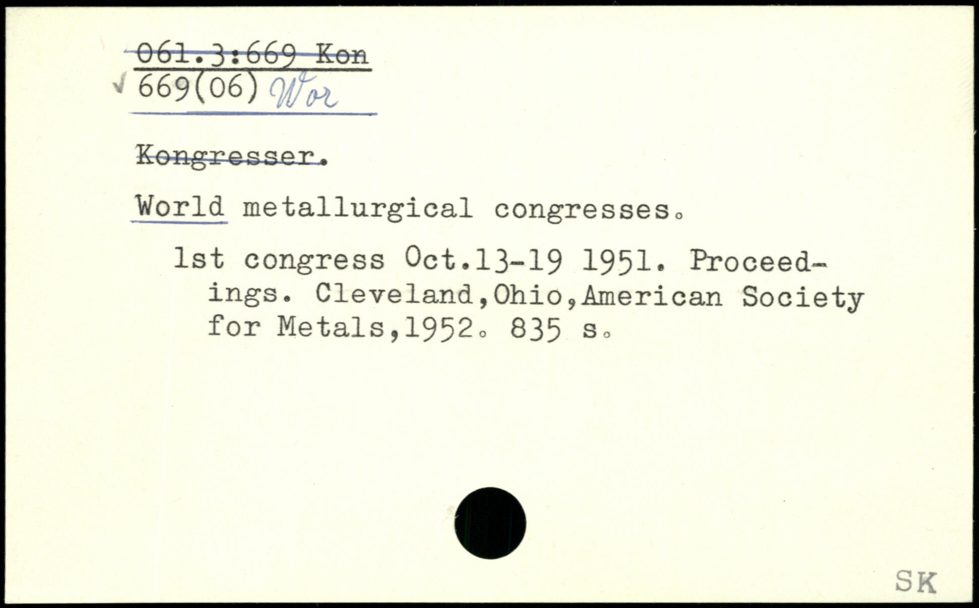 ■efe'/iififiO K<m V 669(06 Ke-ngresser. World metallurgical congresses, 1st congress Oct.13-19 1951. Proceedings.