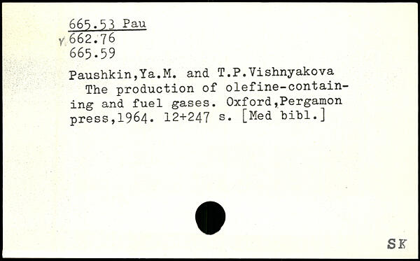 Paushkin,Ya.M. and T.P.Vishnyakova The production of olefine-containing and fuel gases.