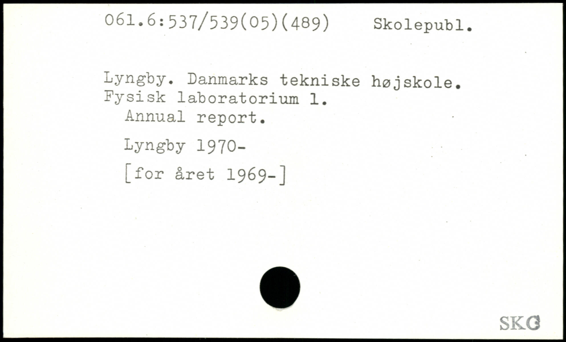 Lyngby. Danmarks tekniske højskole. Fysisk laboratorium 1. Annual report. Lyngby 1970-
