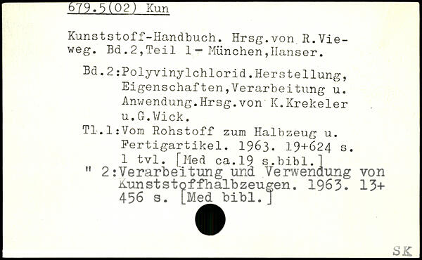 Kunststoff-Handbuch. Hrsg.von R.Vieweg.