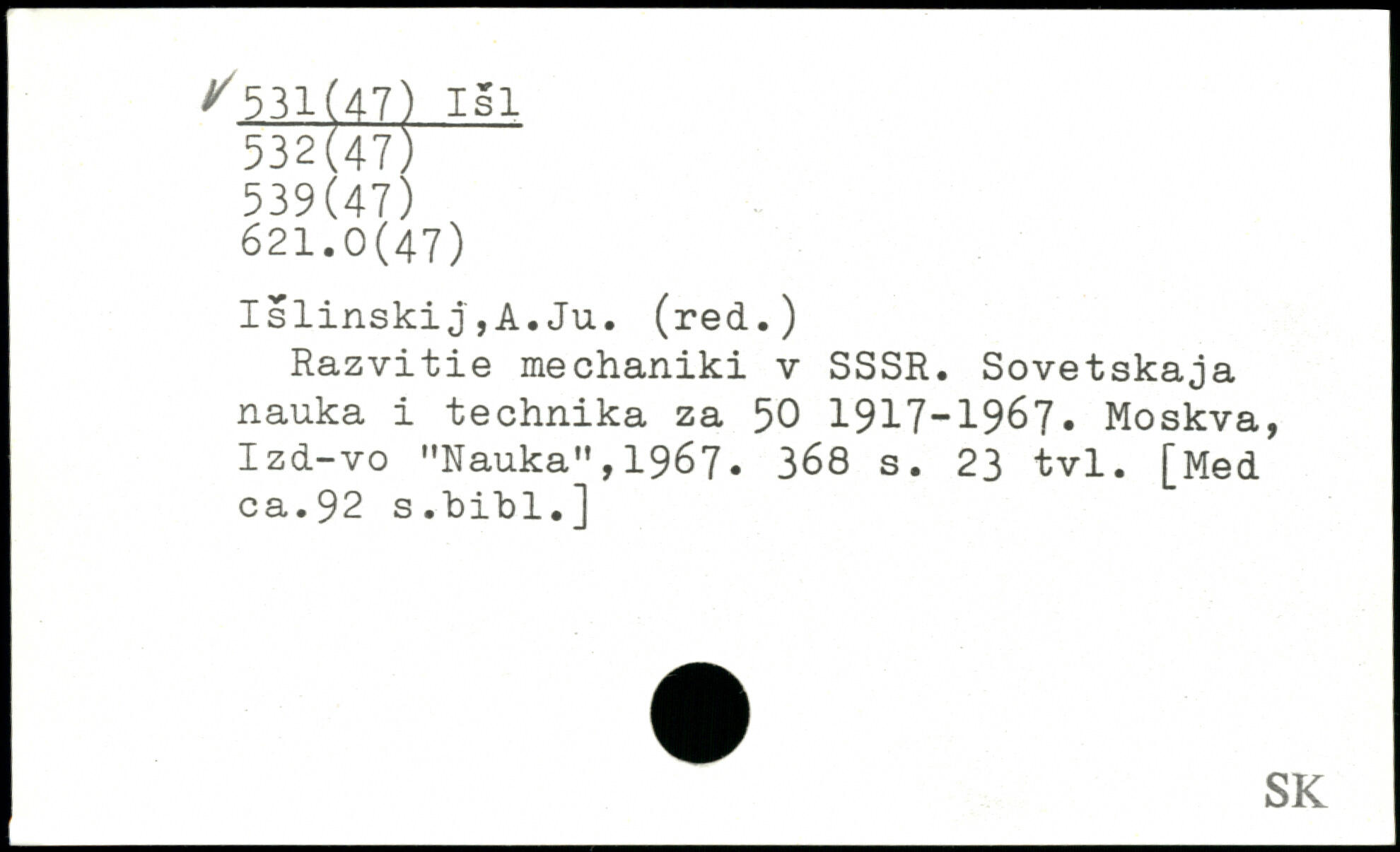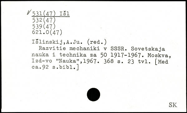 IslinskiJ,A.Ju. (red.) Razvitie mechaniki y SSSR. Sovetskaja nauka i technika za 50 1917-1967. Moskva, Izd-vo "Nauka",1967.