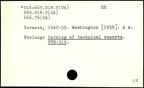 Cermets, 1940-59.