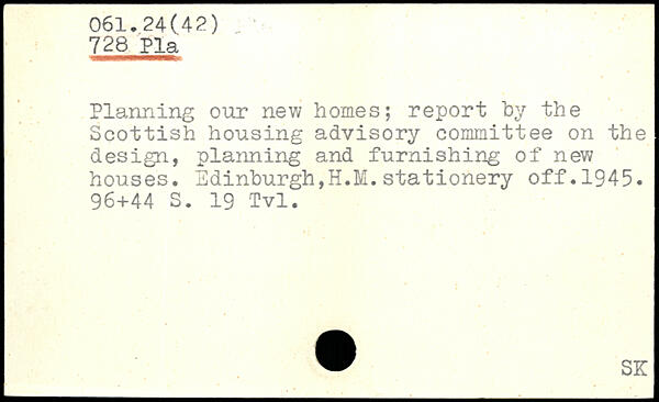 Planning our new homes; report by the Scottish housing advisory committee on the design, planning and furnishing of new houses. Edinburgh,H.M.stationery off.1945.